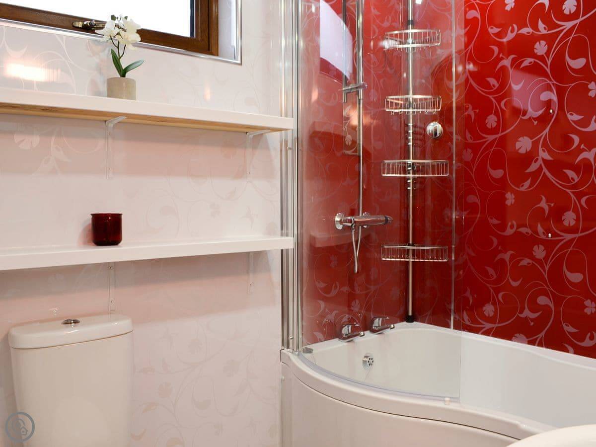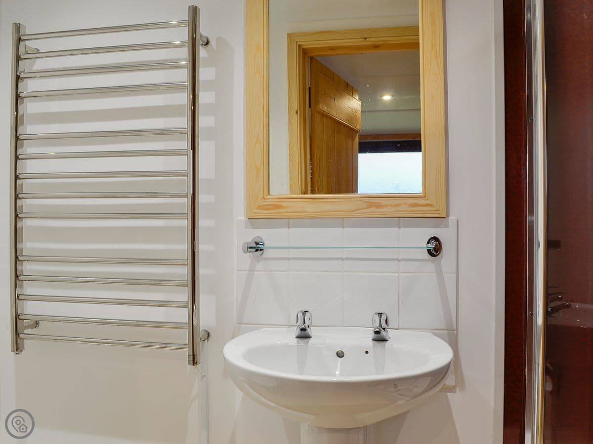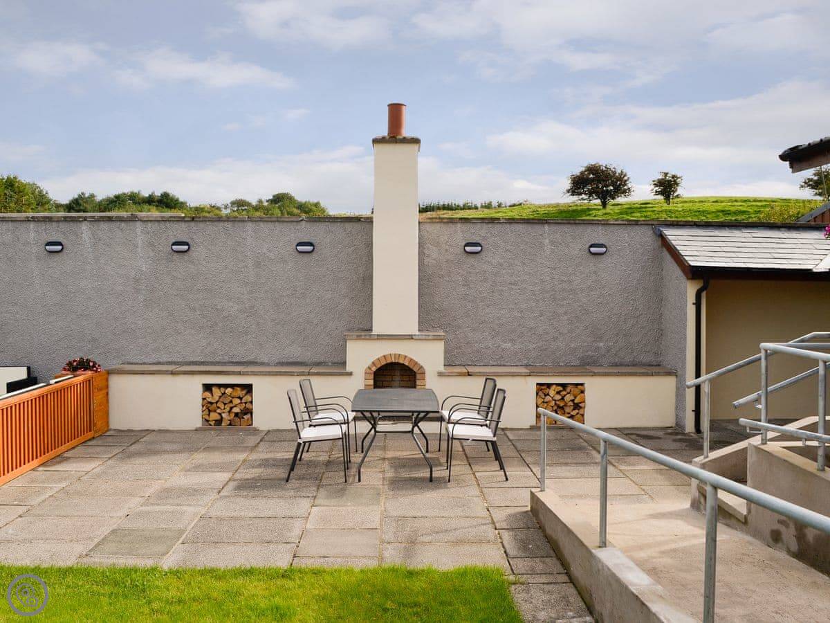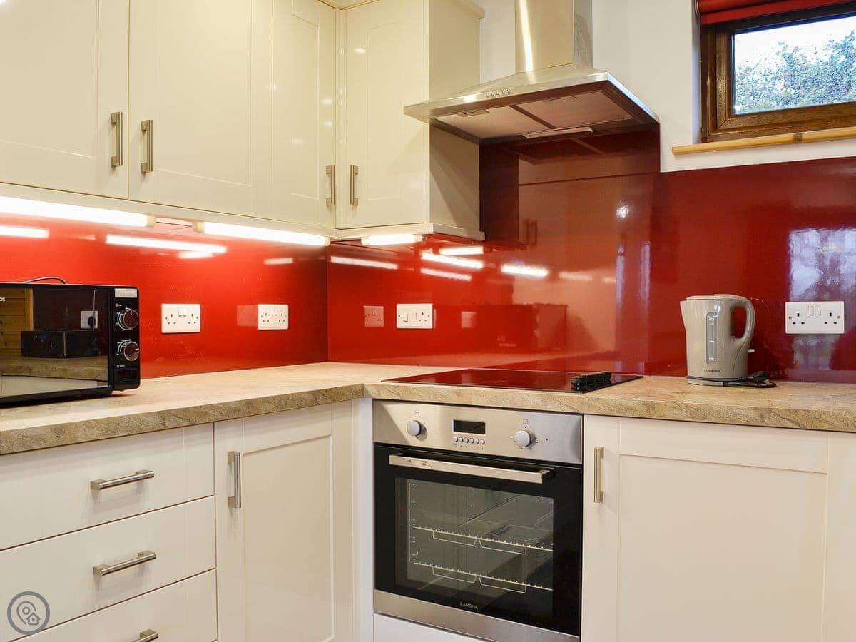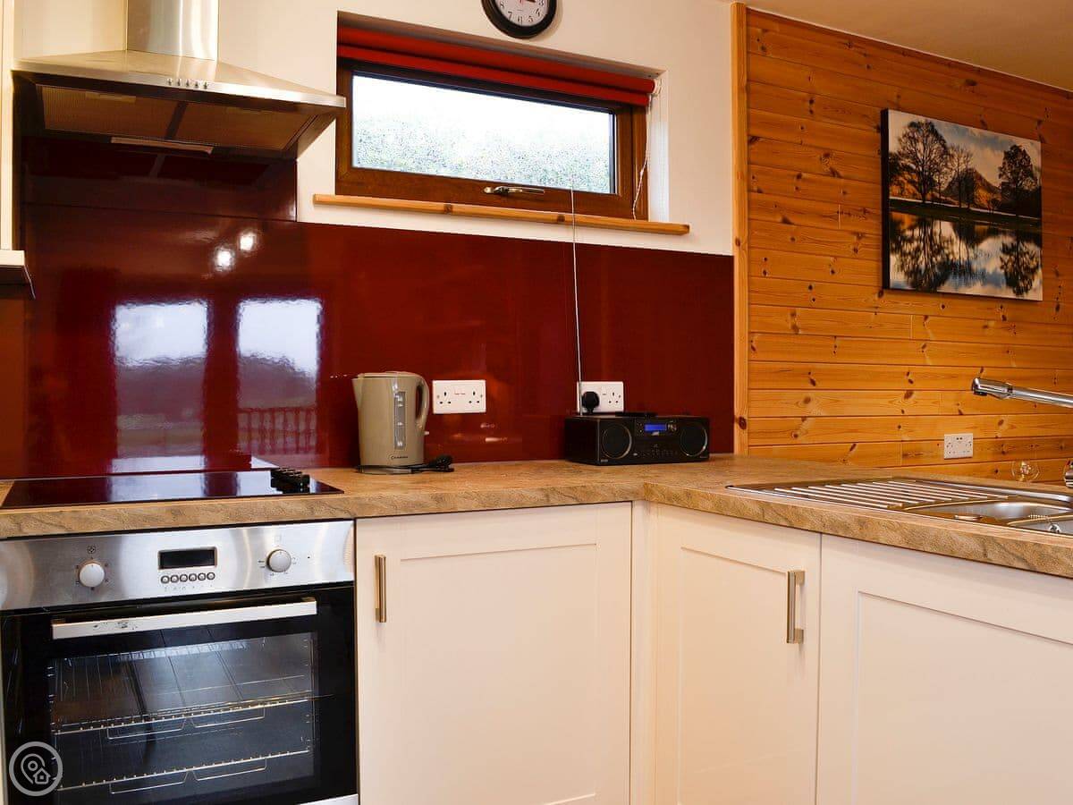 It's got a wood burner in the open plan living area. The kitchen has a dishwasher. There's a washing machine, Wi-Fi, and bedding and towels are included. There's a cot and highchair if you need them.