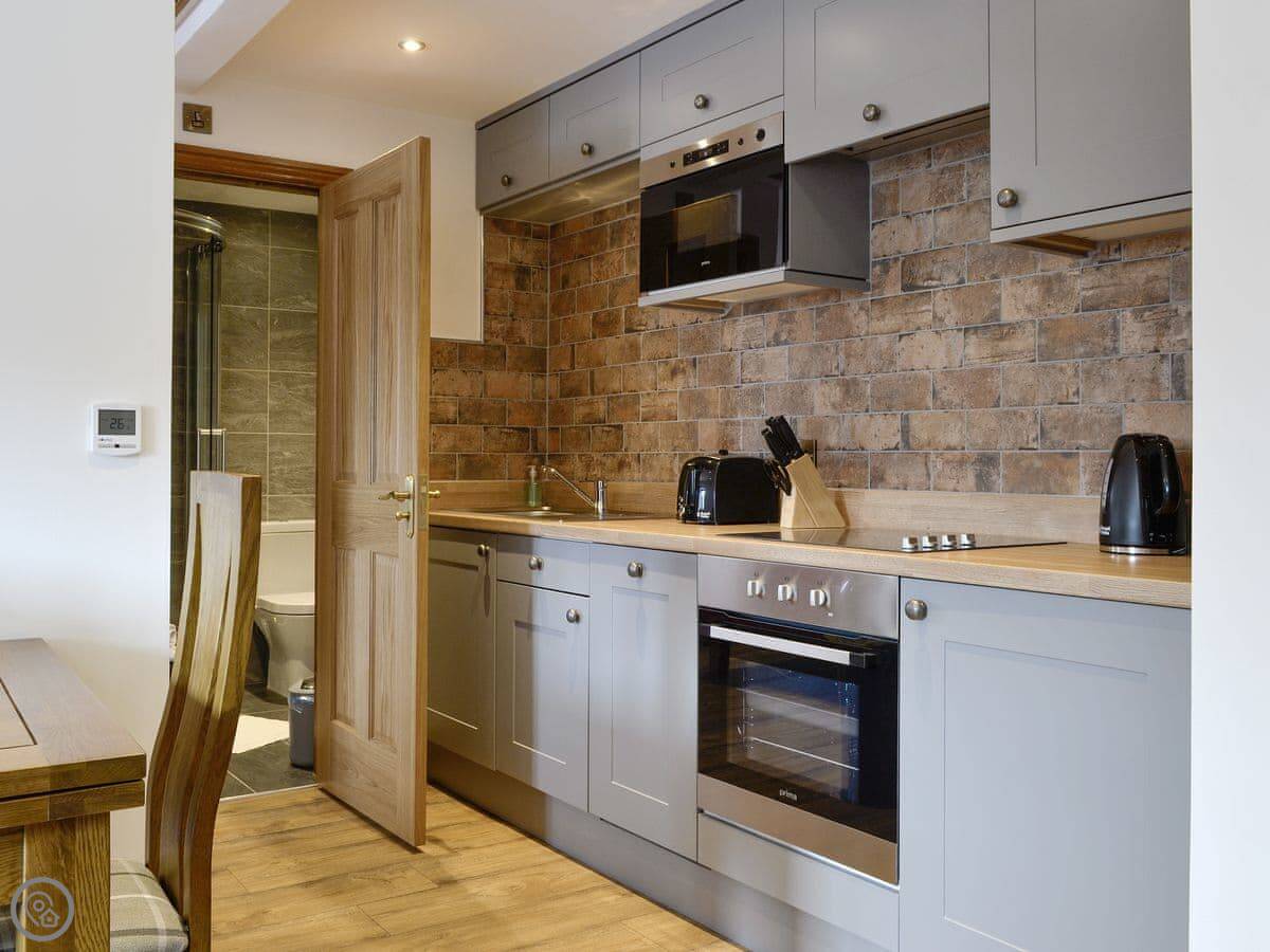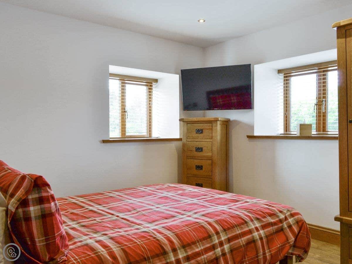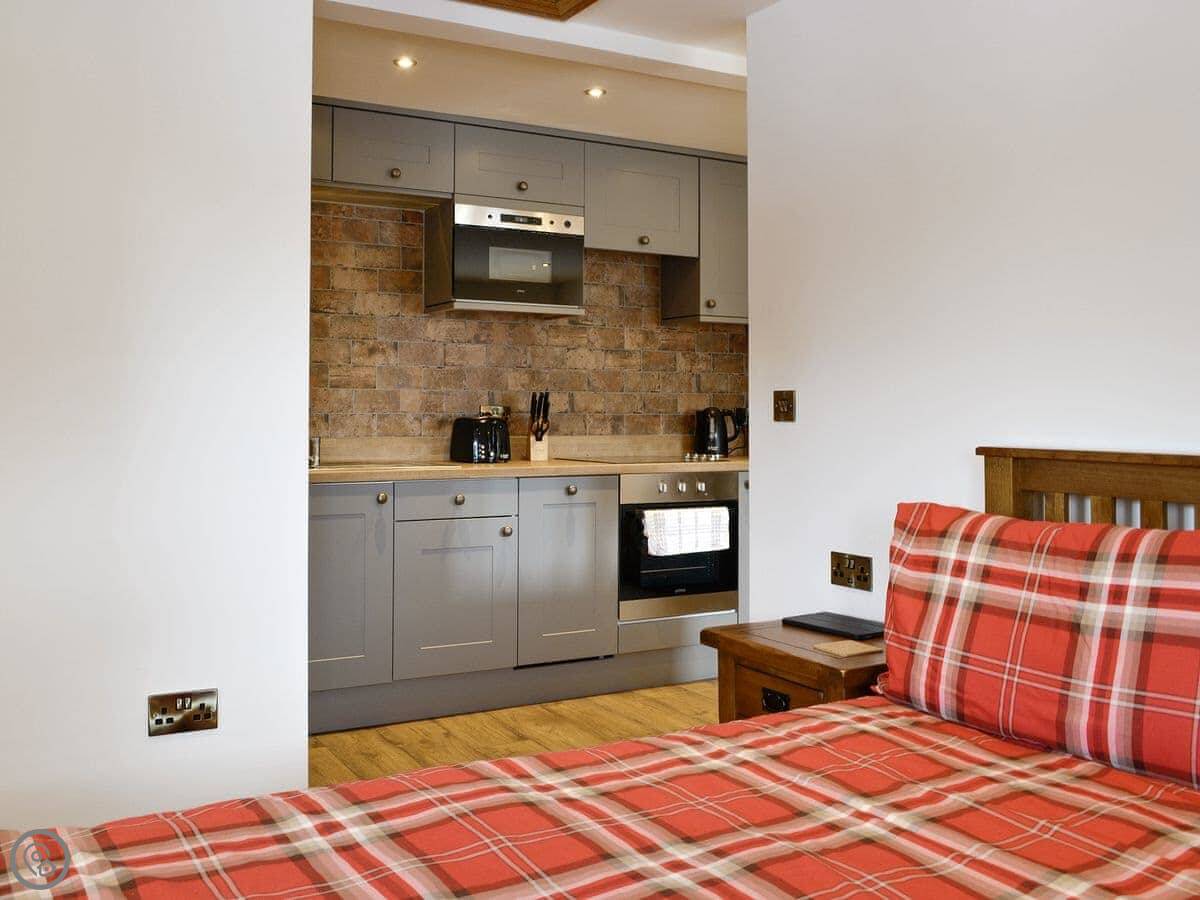 The Byres Tethera is a first floor apartment which is perfect for couples looking for a relaxing break. With underfloor heating throughout it’s warm and cosy feel is just perfect after a day of exploring this beautiful part of the world. Its open plan living, kitchen and dining area offer a very convenient layout. Finished to a good standard the contemporary look and feel of this holiday cottage is evident as soon as you walk in. The double bedroom complete with TV is spacious with plenty of storage for your belongings. The bathroom has been finished to a good standard and features a modern shower cubicle.