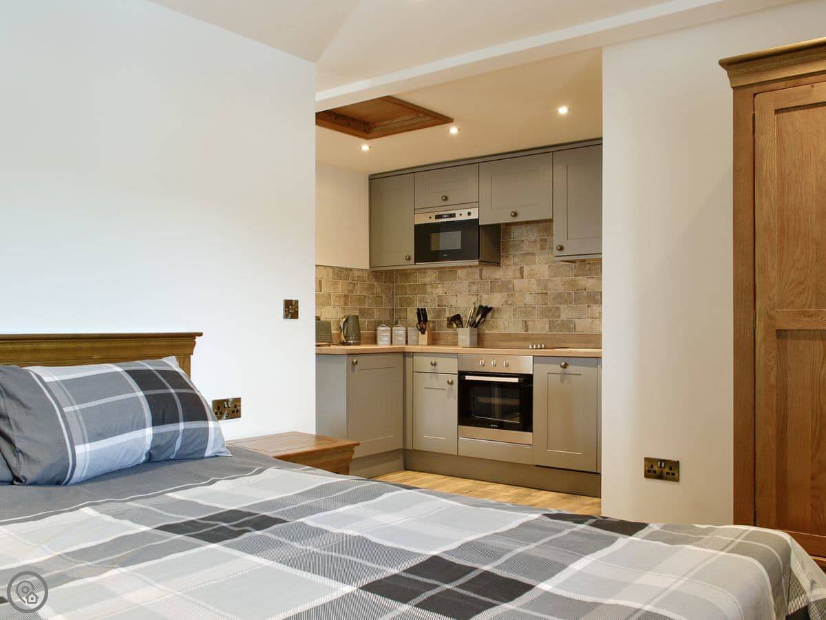 The Byres Methera is a first floor apartment which is perfect for couples looking for a relaxing break. With underfloor heating throughout it’s warm and cosy feel is just perfect after a day of exploring this beautiful part of the world. Its open plan living, kitchen and dining area offer a very convenient layout. Finished to a high standard the contemporary look and feel of this holiday cottage is evident as soon as you walk in. The bedroom with kingsize bed complete with TV is spacious with plenty of storage for your belongings. The bathroom has been finished to a good standard and features a modern shower cubicle.