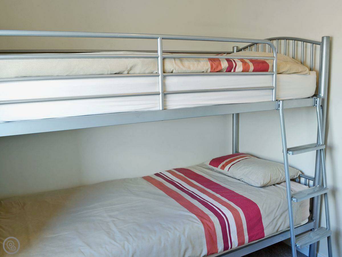 It sleeps four. Three bedrooms and one bathroom. It’s a 3 Star property, so everything works and it’s clean, but it’s not luxury. The stairs are a bit steep at the top, just so you know.