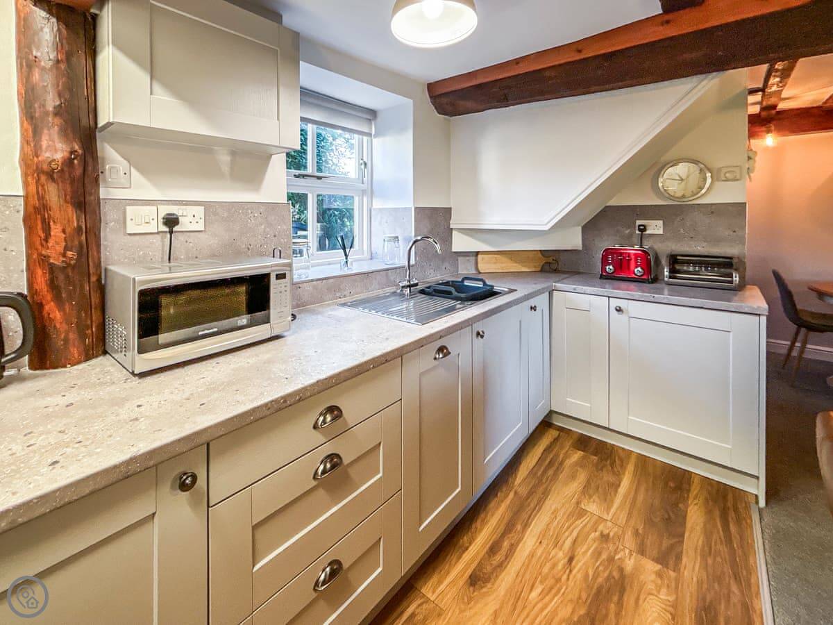 It sleeps four, in two bedrooms. There's one bathroom. It's got a 4 Star rating, so it's comfortable. It's an old building though, so the ceilings are low in places and the doorways are a bit narrow. You'll know you're in a cottage.