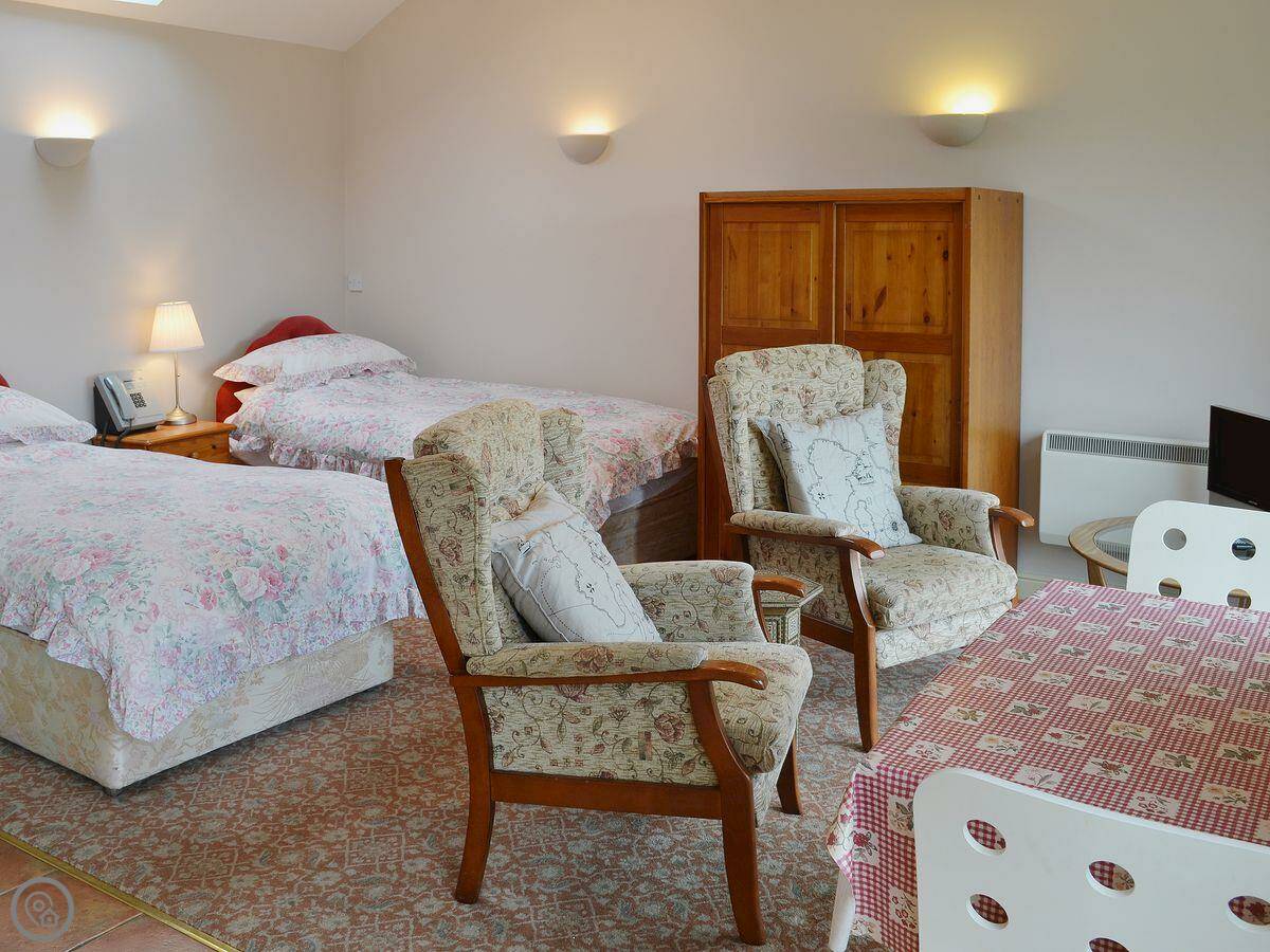 You've got your own patio area to sit out on. There's a games room in the main farm building you can use, with a pool table and darts. Parking is right outside the door.