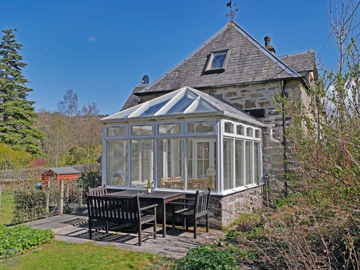 The Coach House is in Birnam, just outside Dunkeld. It's a detached stone cottage that used to be the coach house for the big house next door. That house, Heath Park, has a connection to Beatrix Potter from the 1890s. The cottage is up on a quiet private road, so it's peaceful. You've got your own enclosed garden, which is part of the wider grounds.