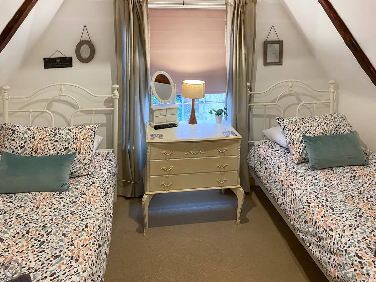 It sleeps eight people. Four bedrooms, two bathrooms. It’s got a 4 Star rating. We’ve tried to make it comfortable, with a mix of old and new furniture. There’s a woodburning stove for cooler evenings.