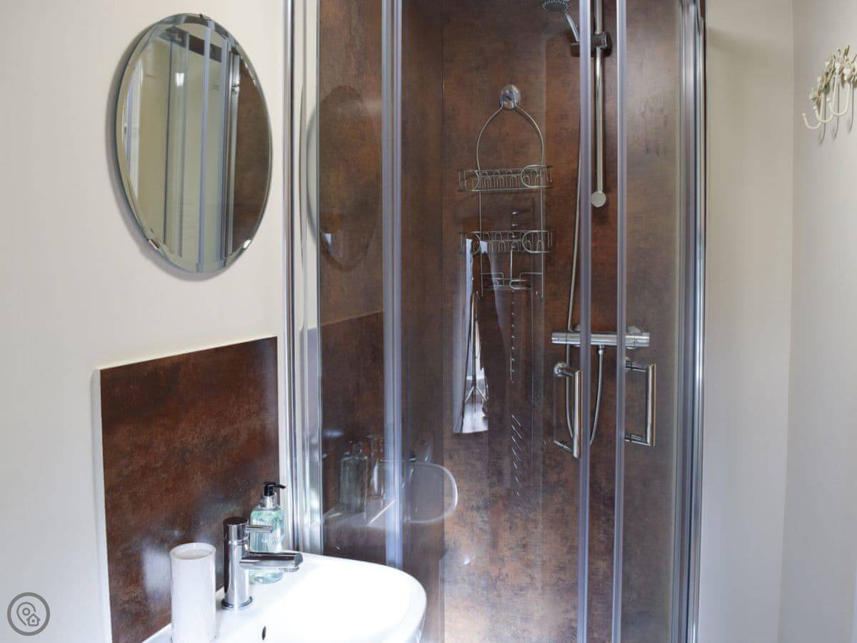 It's got a 4 Star rating. That means it's well looked after and comfortable. There are two bathrooms, which is handy. The cottage is built into the hillside, so the floors aren't all level. There are some steps inside. The stairs to the bedroom are steep, as you'd expect. The original stonework and beams are there.