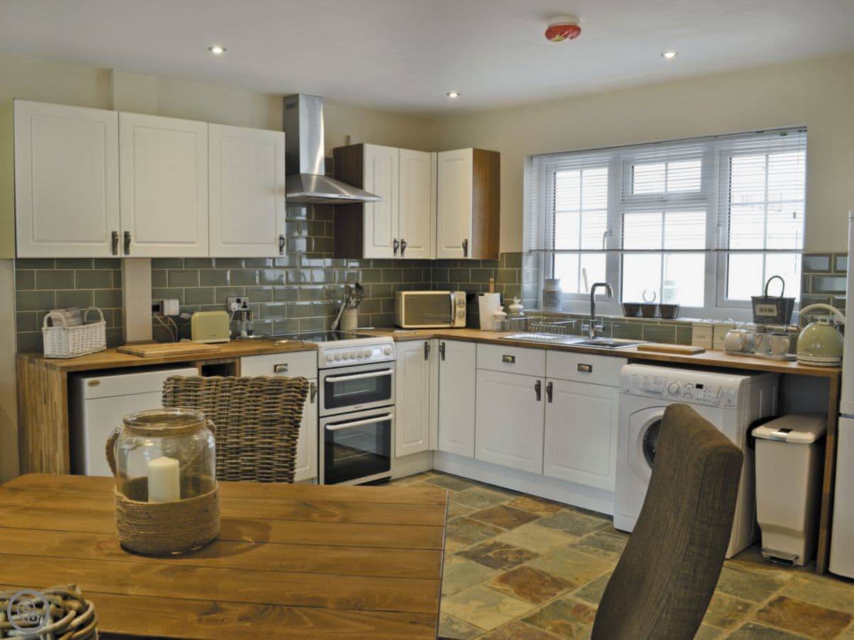 Inside we've kept the cottage feel. There's a woodburning stove for cooler nights, and it comes with WiFi, a TV, a washing machine, and a dishwasher. Bedding and towels are included. We can provide a cot and a highchair if you need them.