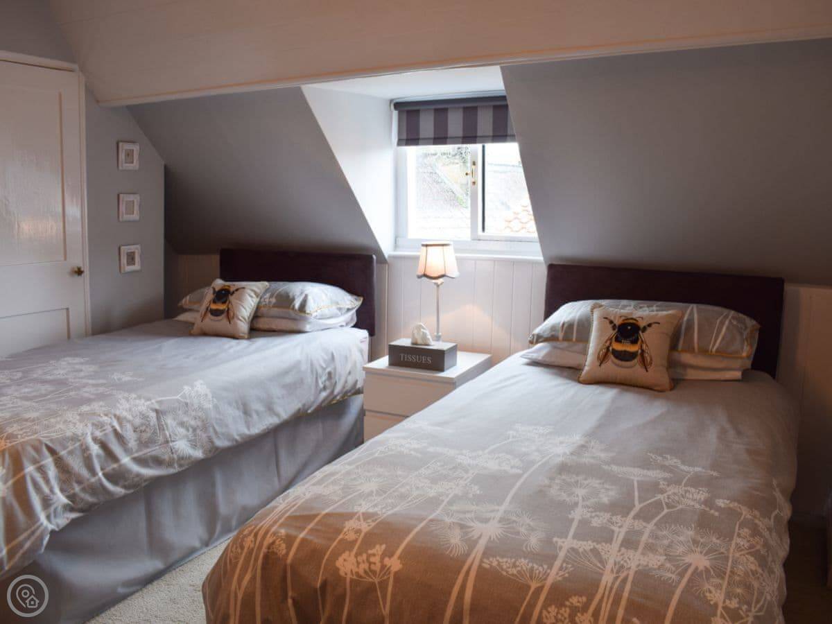 It sleeps four. Two bedrooms, one bathroom. It's got a 4 Star rating. Everything works, it's clean and modern inside, but you definitely know you're in an old building.