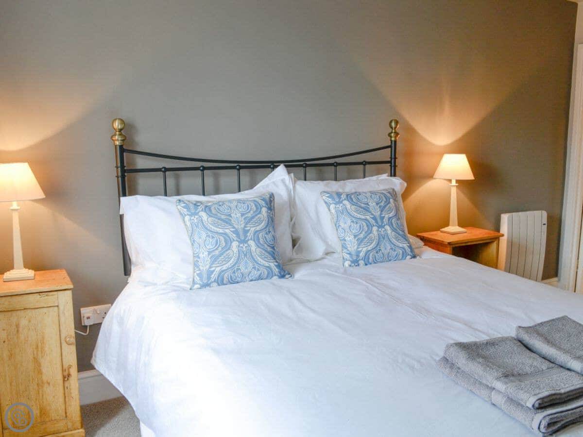 The cottage sleeps two. One bedroom, one bathroom. It's got a 4 Star rating. It's comfortable and everything's included, like bedding and towels. The stairs in the description are accurate: they're open and steep.