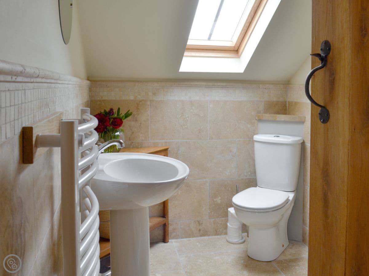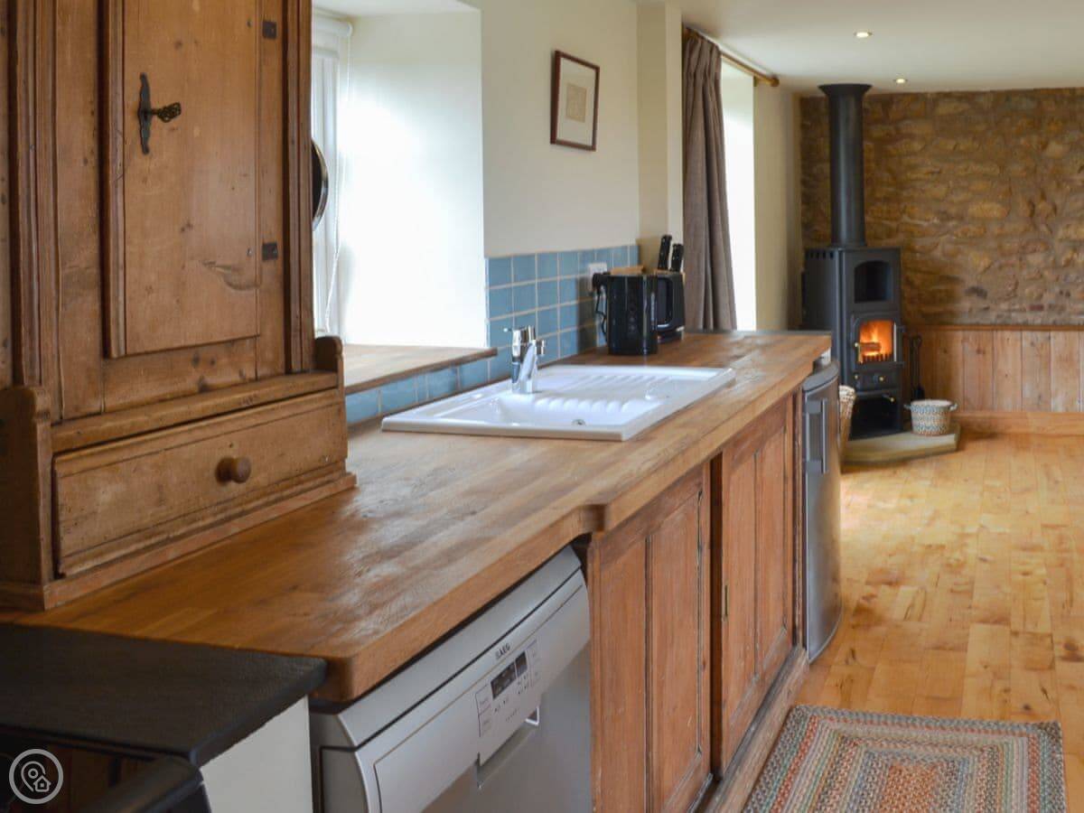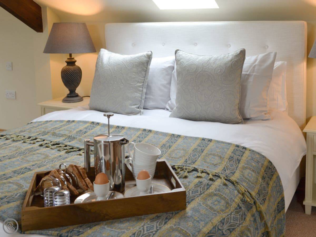 It's for two people. One bedroom, one bathroom. It's got a 4 Star rating, so it's comfortable and well-finished. The ceilings are low in places because of the old beams, so mind your head if you're tall.