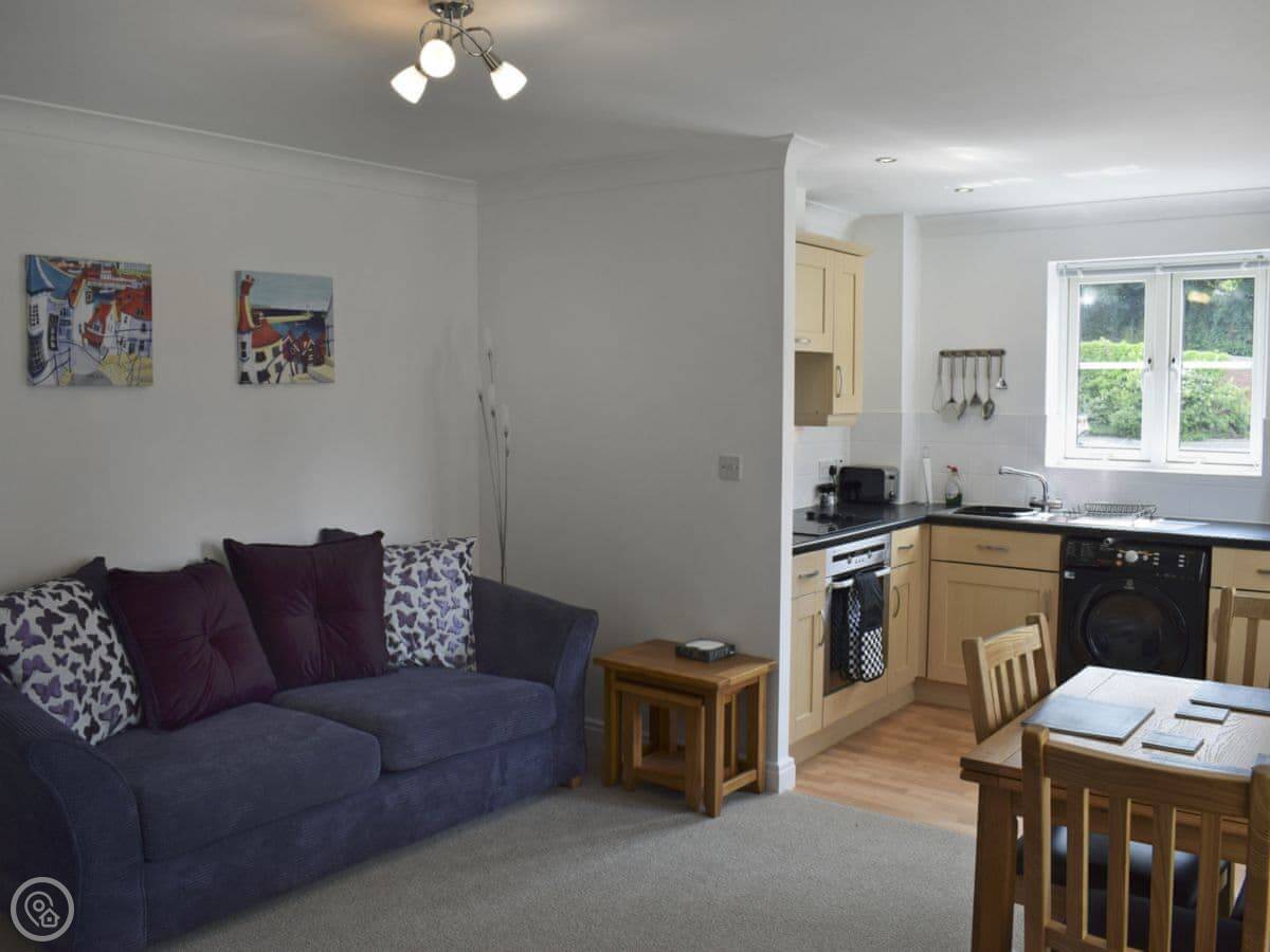 The main thing is the location. You're up the hill a bit from the harbour, about a five or ten minute walk down. You can see the River Esk from the communal garden. It gets busy in the town centre in summer, but it's quiet up here.