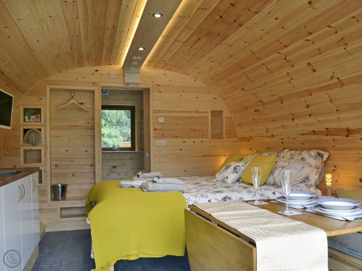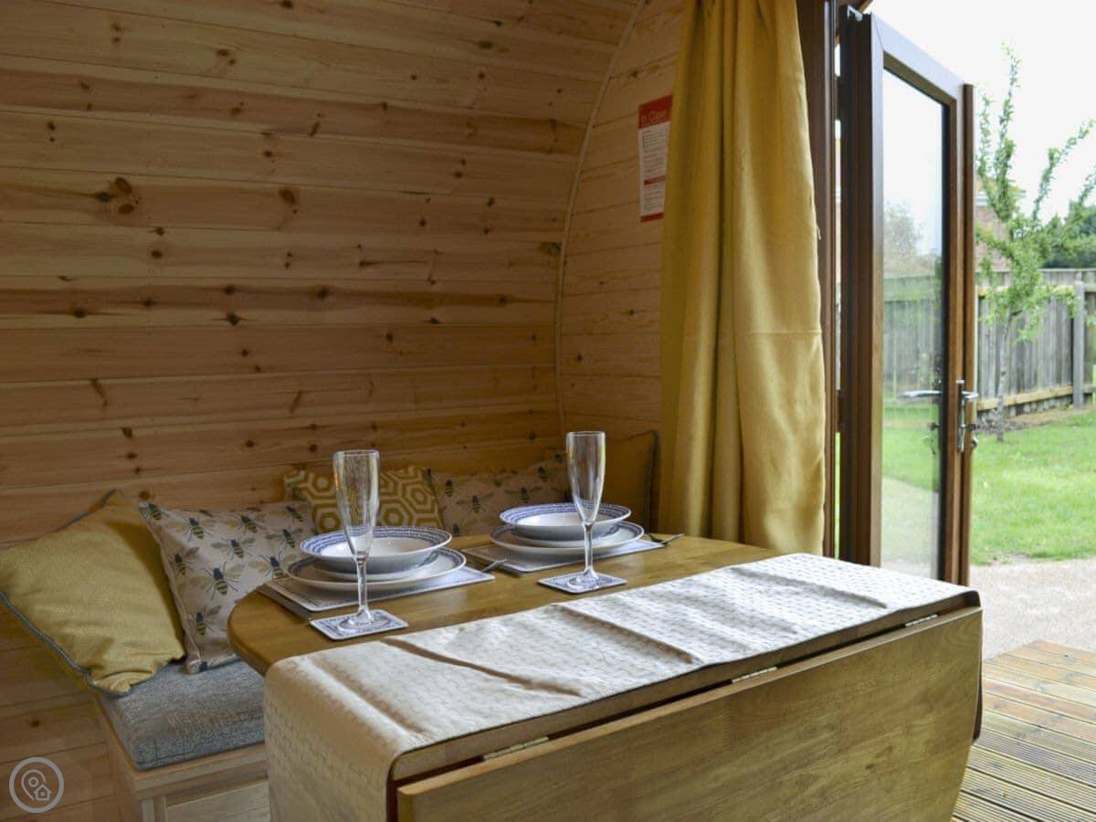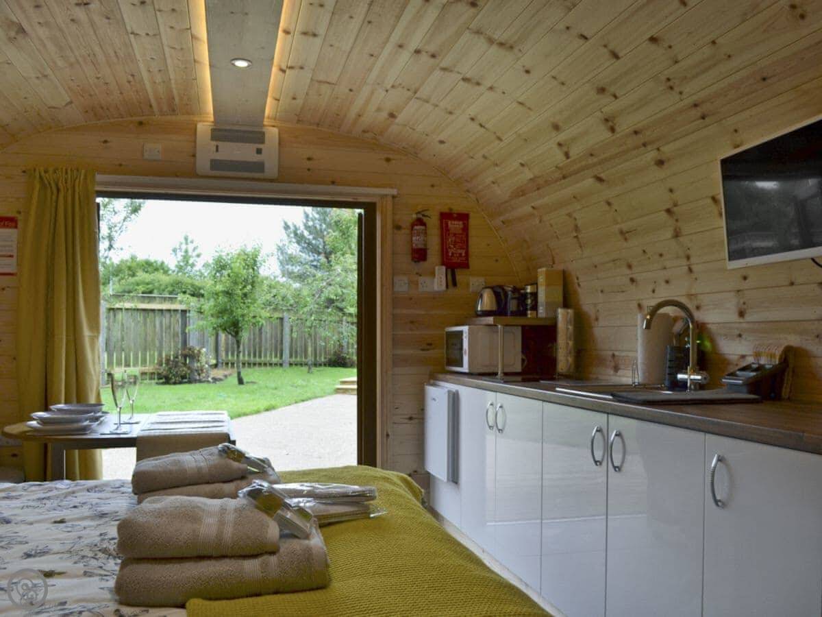 If you are looking for something a little different, then take a look at this contemporary pod. It offers the epitome of luxury for couples who are dreaming of ultimate relaxation. The Hive, with its outlook over apple and pear trees, has its own private hot tub and barbecue. Built by local craftsmen, the pod has a natural wood, barrel construction, double glazing and a thermostatic heating system, making it perfect for all year round use. It has a handcrafted kingsize bed with a memory foam mattress and designer bedding, as well as a designer en-suite bathroom with complimentary toiletries. Guest slippers and all towels, including those for the hot tub, are also provided as an extra touch. A short walk leads to Skipsea beach where visitors have public access to the beach and golf course, as well the golf bar/restaurant/shop at Far Grange Caravan Park. The traditional seaside resorts of Hornsea and Bridlington are close by. Hornsea Mere offers opportunities for sailing and fishing, as well as being a paradise for birdwatchers. Hornsea Museum is dedicated to the famous Hornsea pottery and the Freeport is ideal for a spot of retail therapy. Bridlington, with its miles of sandy beaches, award-winning promenades and historic harbour provides a leisurely day out, and the Spa features an exciting entertainment programme. There are stately homes to visit at Sledmere, Burton Agnes and Sewerby Hall, and the ancient city of York, Hull, voted the ’City of Culture 2017’ and the North York Moors are all easily accessible. Beach 800 yards. Shop and pub 1½ miles, restaurant 4 miles.
