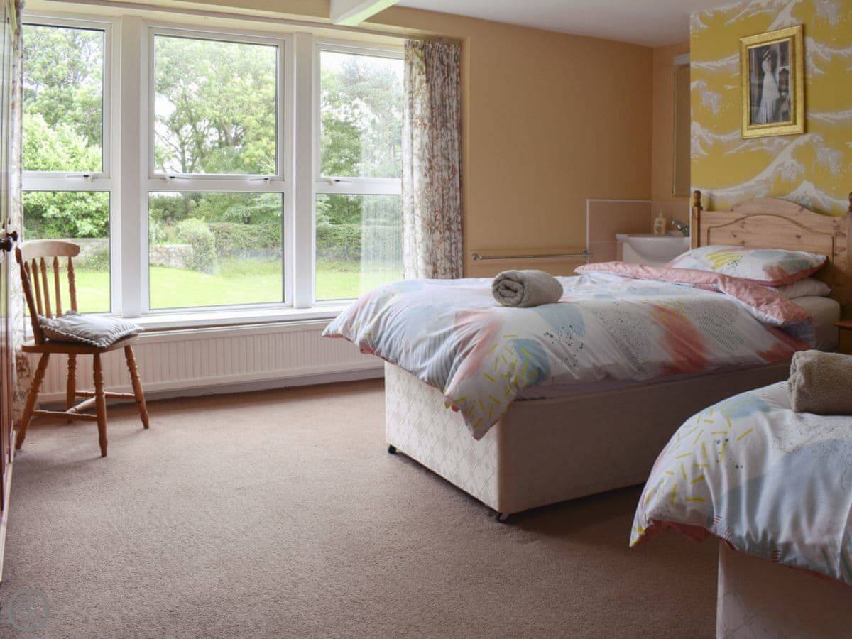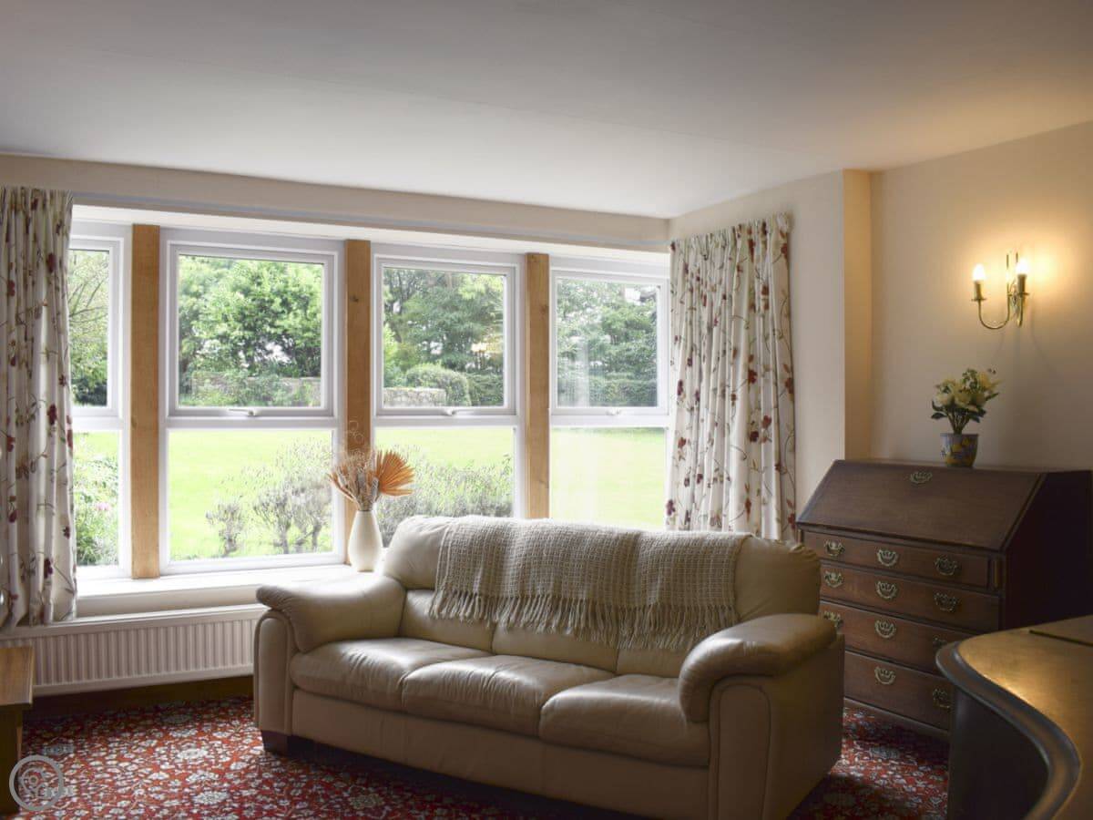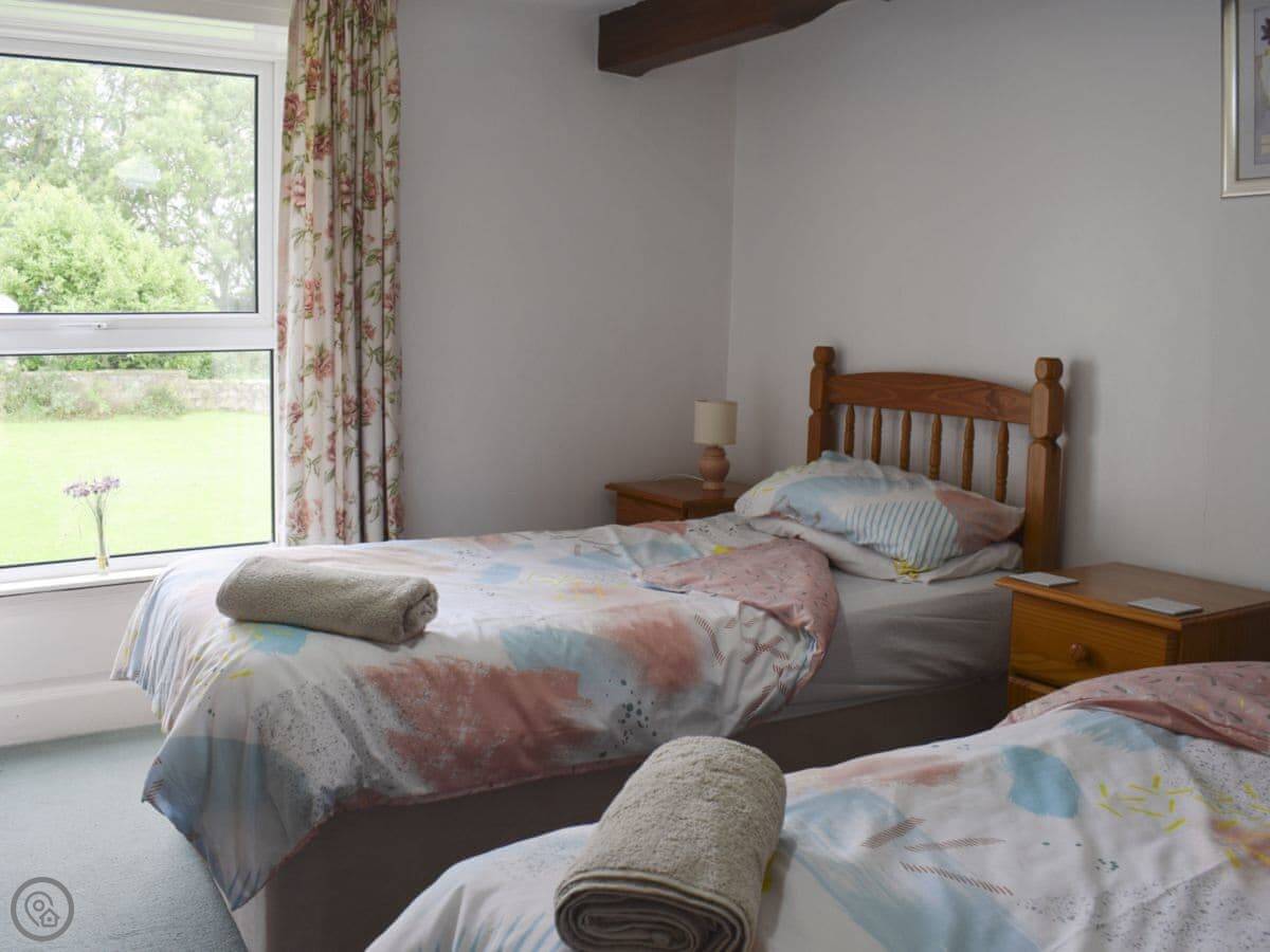 It sleeps ten. Five bedrooms, two bathrooms. It's got a 3 Star rating. It's comfortable and full of character, not a modern show home. The gardens are walled and quite large. You get a lot of birds.