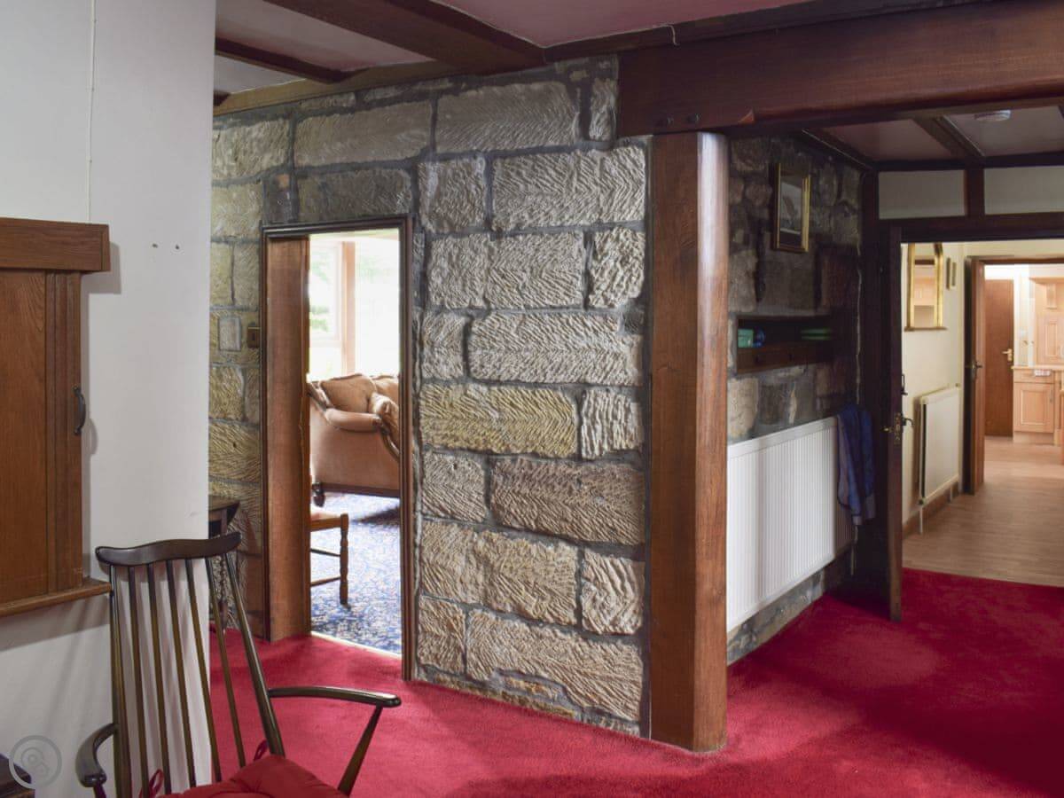 It's opposite the old Kilton Castle, or what's left of it. Inside, there's a lot of original panelling, stone walls, and beams. There are two big sitting rooms. One has an open fire and window seats looking out over the garden.
