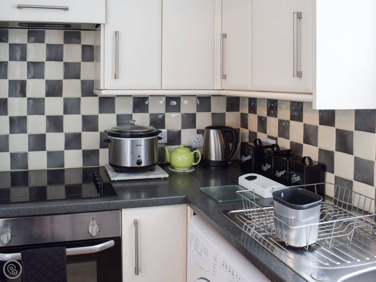 You're about a five minute walk from the town centre. The harbour, the shops, the fish and chips, it's all right there. The 199 steps up to the Abbey are at that end of town too. It's a proper climb but the view from the top is worth it.