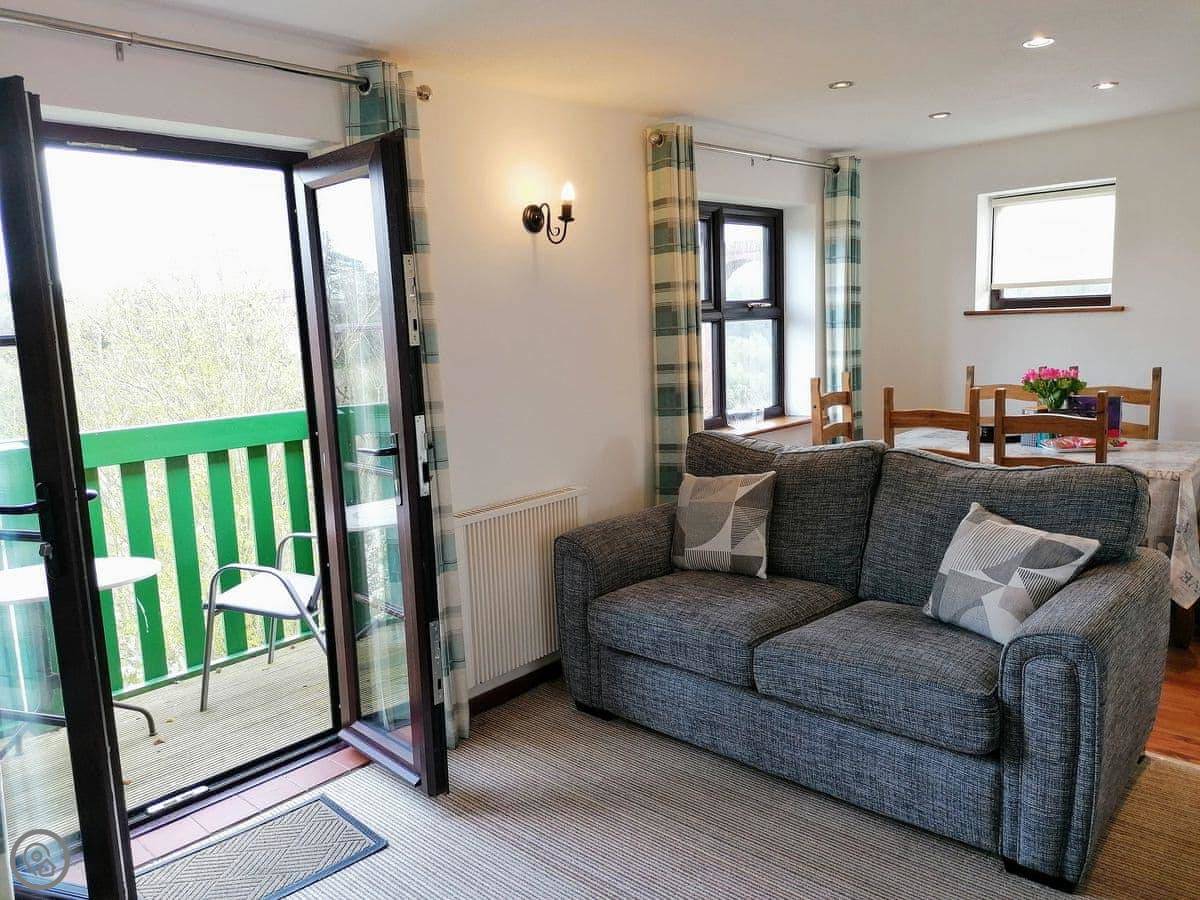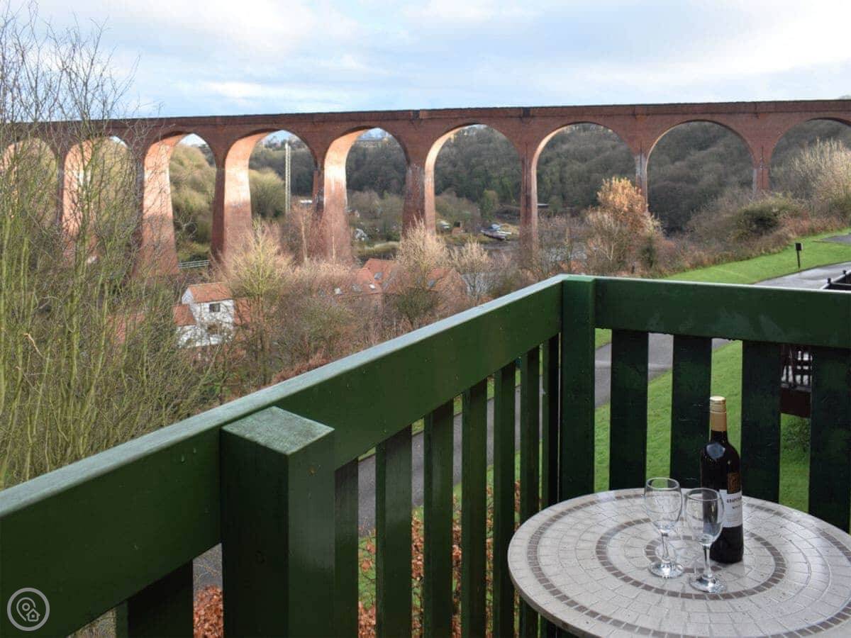 The upstairs living area has a small balcony. You get a good view of the old railway viaduct from it. You can sometimes see the North York Moors steam train going past through the trees. It's a nice spot to sit.
