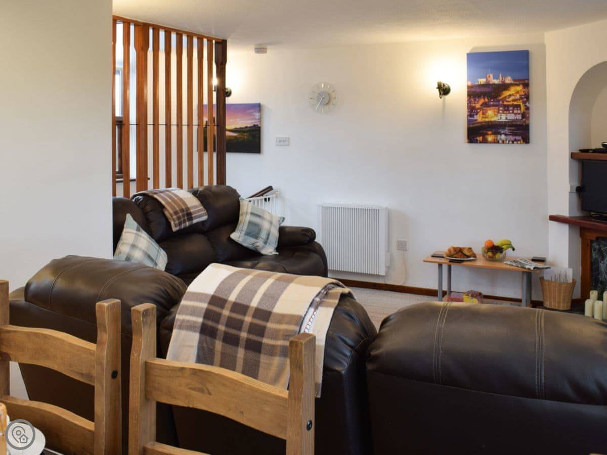 Capstan Cottage is just outside Whitby. It's one of a handful of houses on a small, quiet holiday development. The layout is upside down, which some people like. The three bedrooms and the bathroom are all on the ground floor. The living room and kitchen are upstairs.