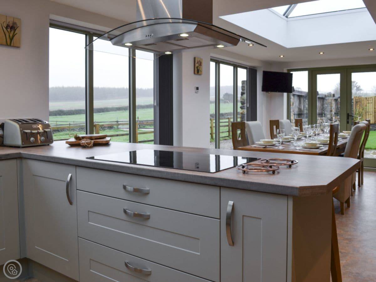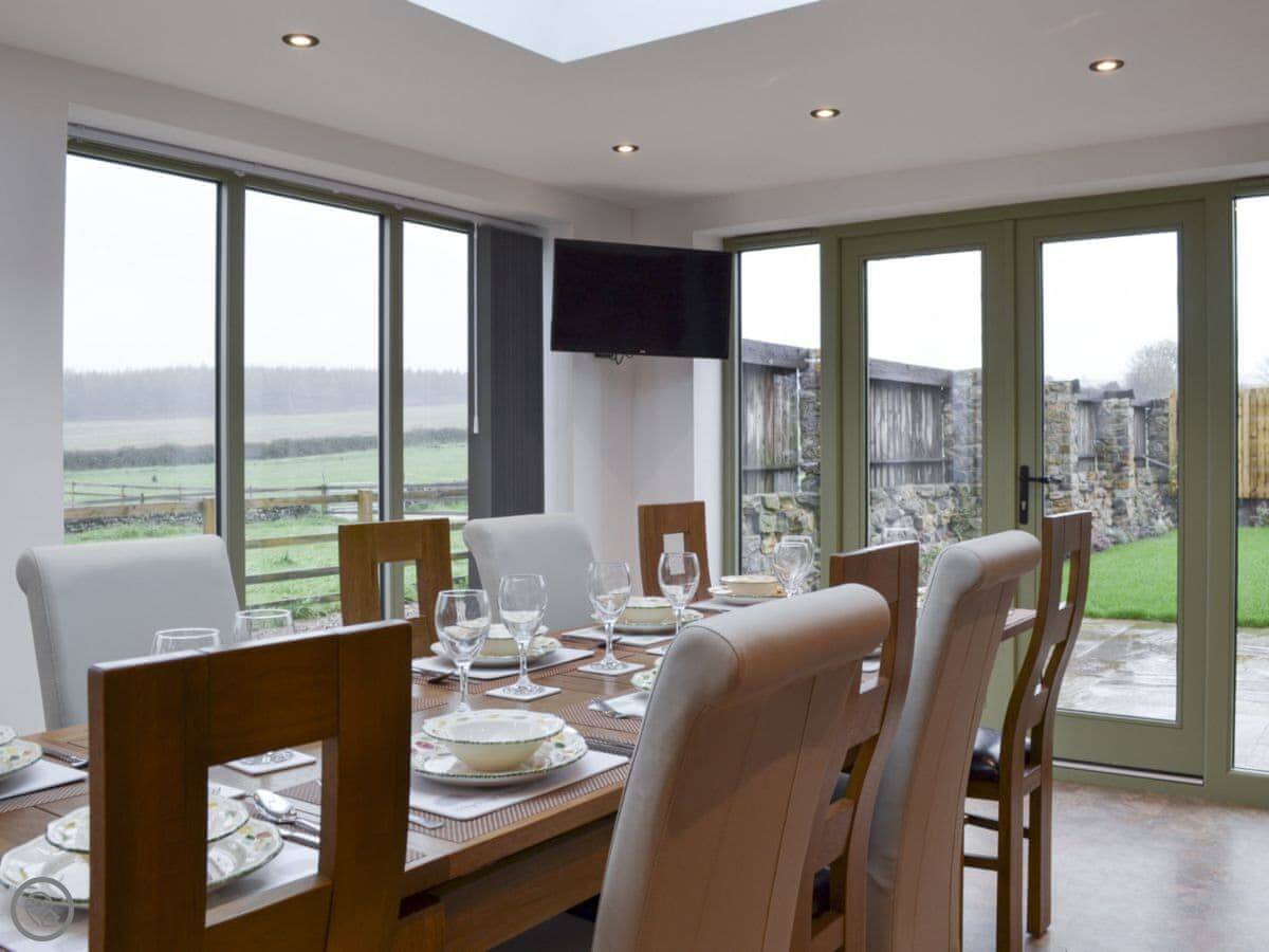 This detached property has been designed to make the most of the wonderful views across the dale, with large panoramic windows which leave you mesmerised by the view. All the bedrooms have private en-suite bath or shower rooms, and are decorated and furnished to a very good standard. The living room has a cosy wood burner and French doors leading out to the enclosed garden and patio area, and there is also a galleried reading area overlooking the living room. The master bedroom on the first floor once again captures the stunning views of the open countryside.