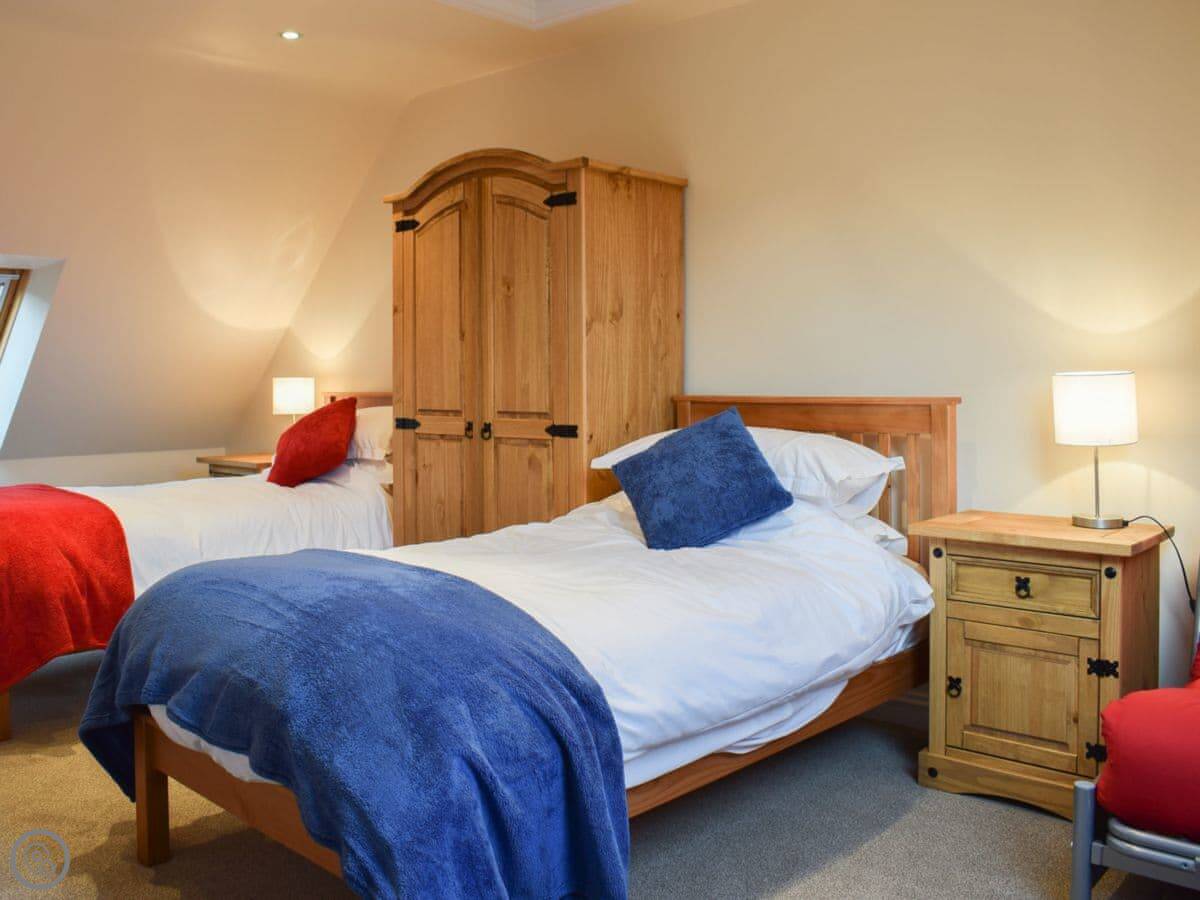 You've got a dishwasher and a washing machine. Bedding and towels are included. There's a cot and a highchair if you need them. There are Smart TVs in the living room, main bedroom, and the top floor. The top floor has beanbags and is set up as a space for kids.