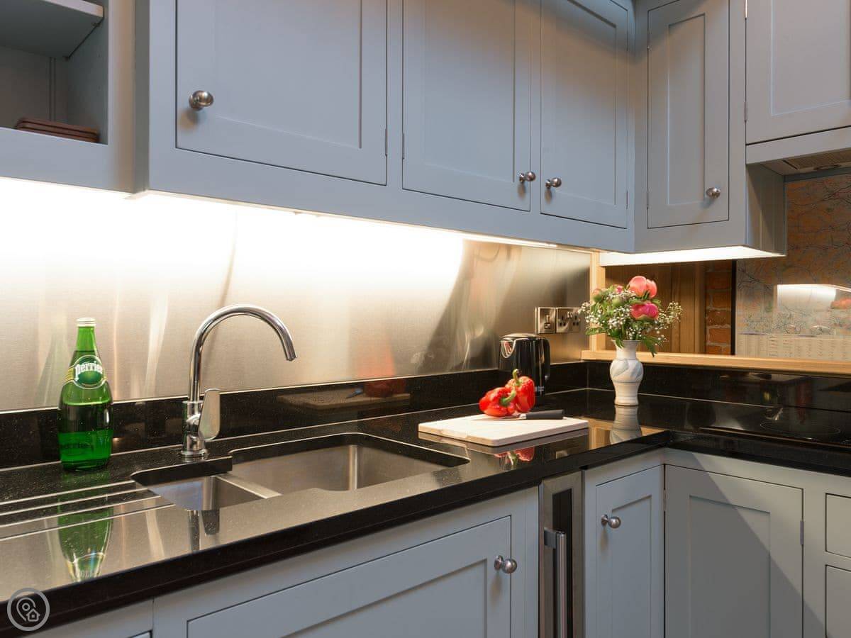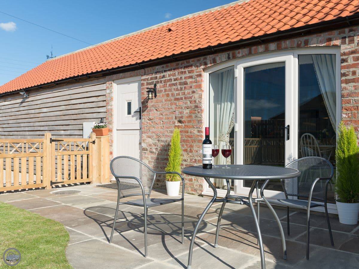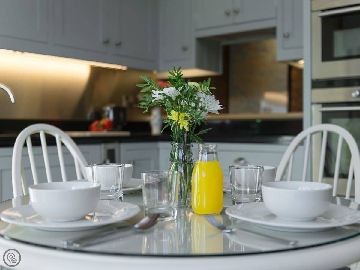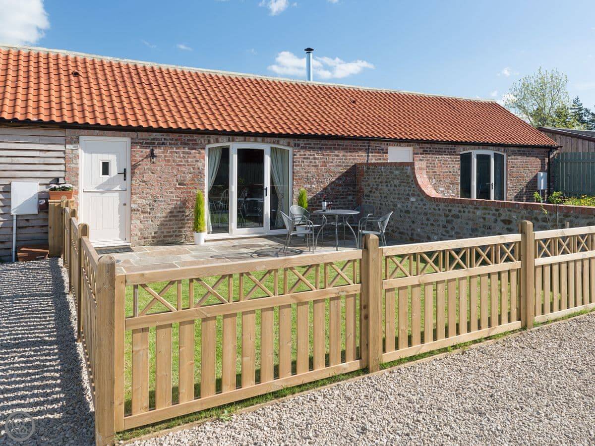 Inside it's warm. There's a wood burner if you want a fire. We leave you some logs. It has a proper kitchen with a dishwasher and a washing machine. Outside there's an enclosed garden with a patio. You can sit out there without worrying about the dog, but we don't allow pets. Sorry.