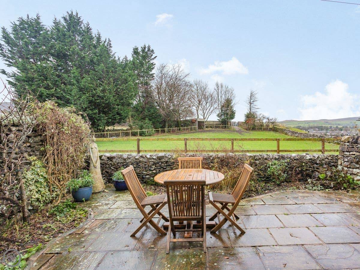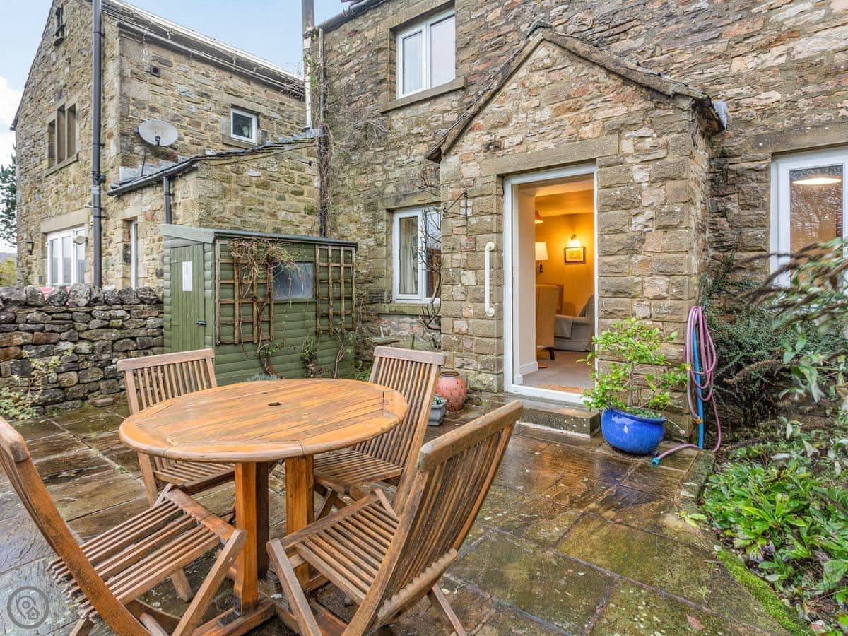 Garsdale Cottage is in Grassington, North Yorkshire. It's at the back of a little row with our house and one other holiday let. You get the cottage and the patio garden to yourselves. The garden looks out over fields, which is nice.