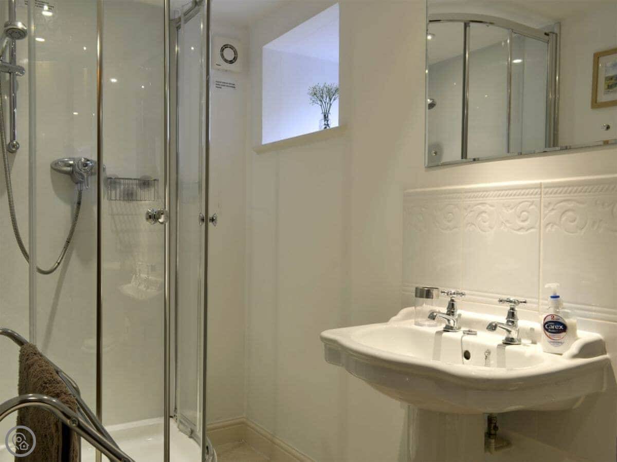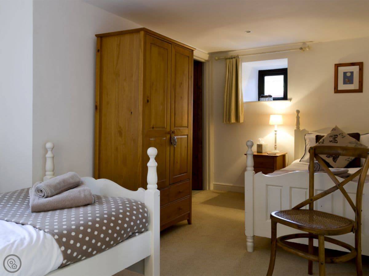 It sleeps six. Three bedrooms, and each has its own bathroom, which is useful. It's a 5 Star place, so it's done to a good standard. It feels solid, with stone floors and oak beams. There's a balcony off the living room. You get a good view of the valley from there.