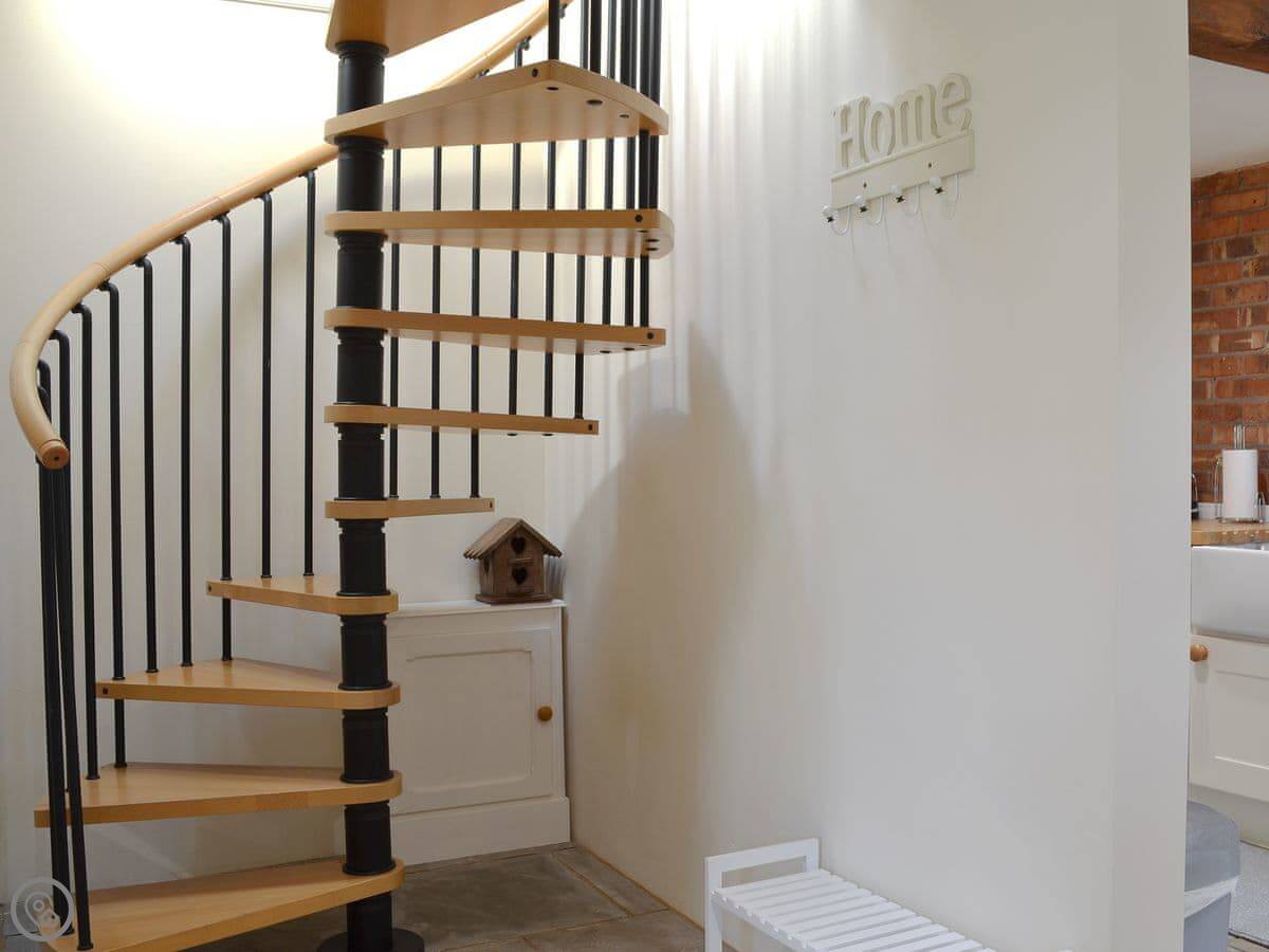 Now, the stairs. They're a spiral staircase. They're steep and a bit narrow, as you'd expect in a barn. Just watch your step.
