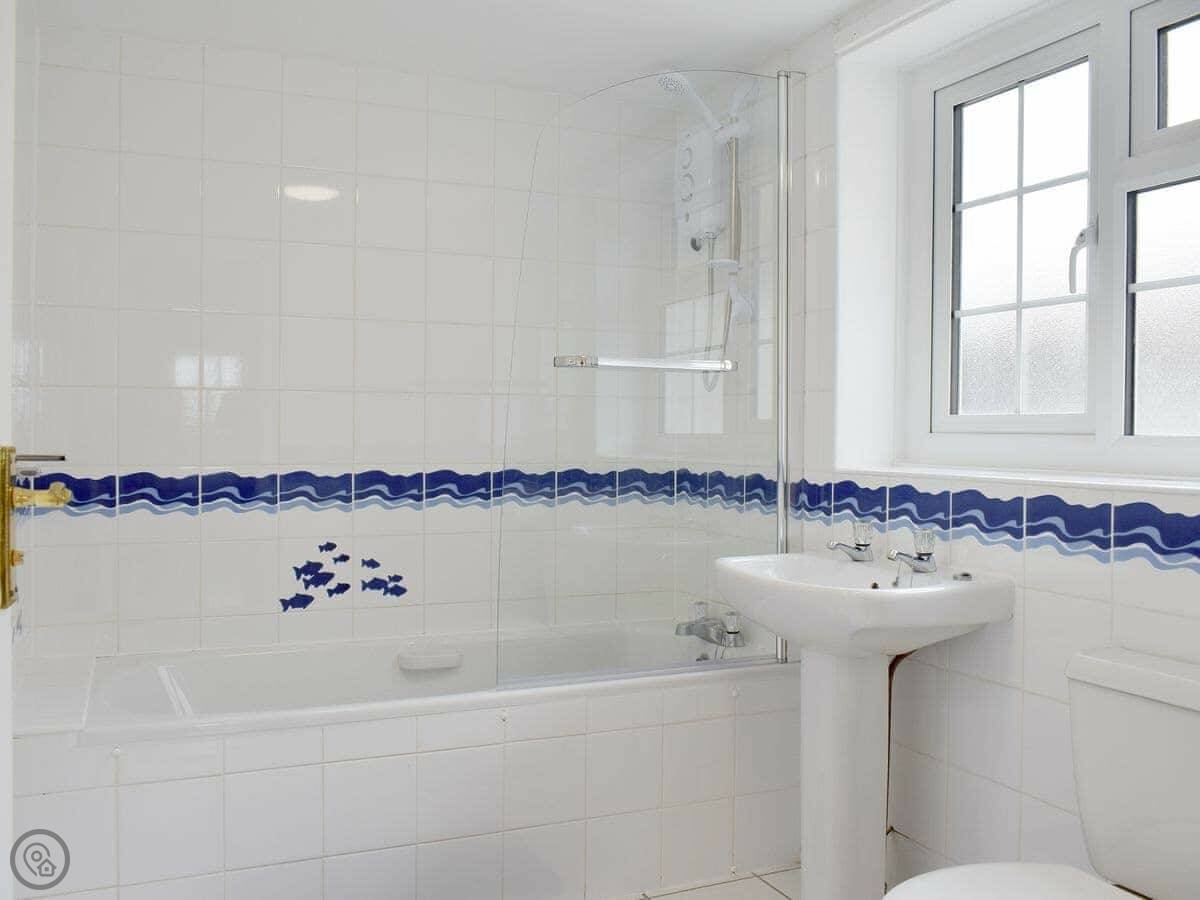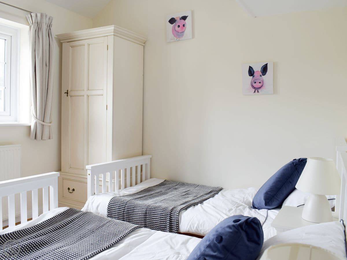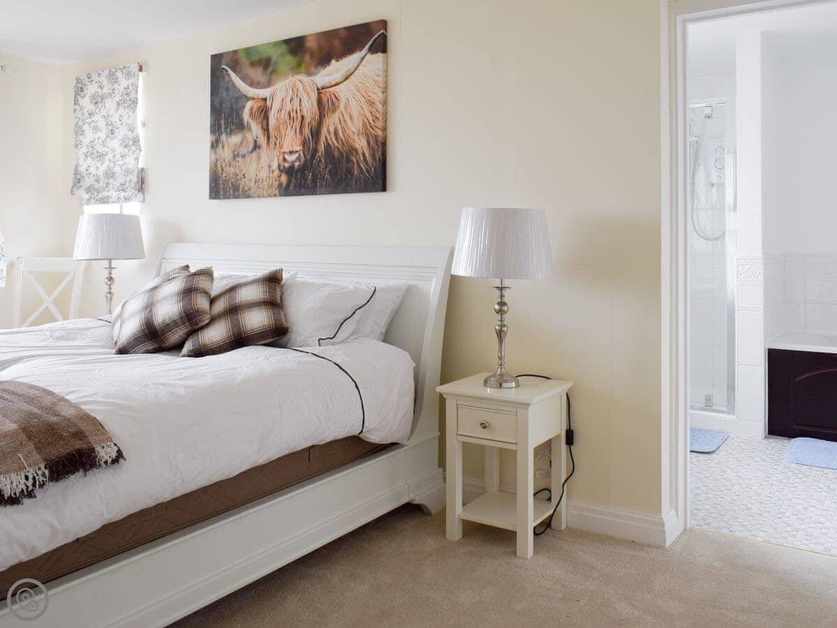 It sleeps four. Two bedrooms, both doubles. Two bathrooms, which is useful. It's got a 4 Star rating. It's comfortable. It's a proper cottage, so the stairs are steep. You need to watch your head on the beam at the bottom.