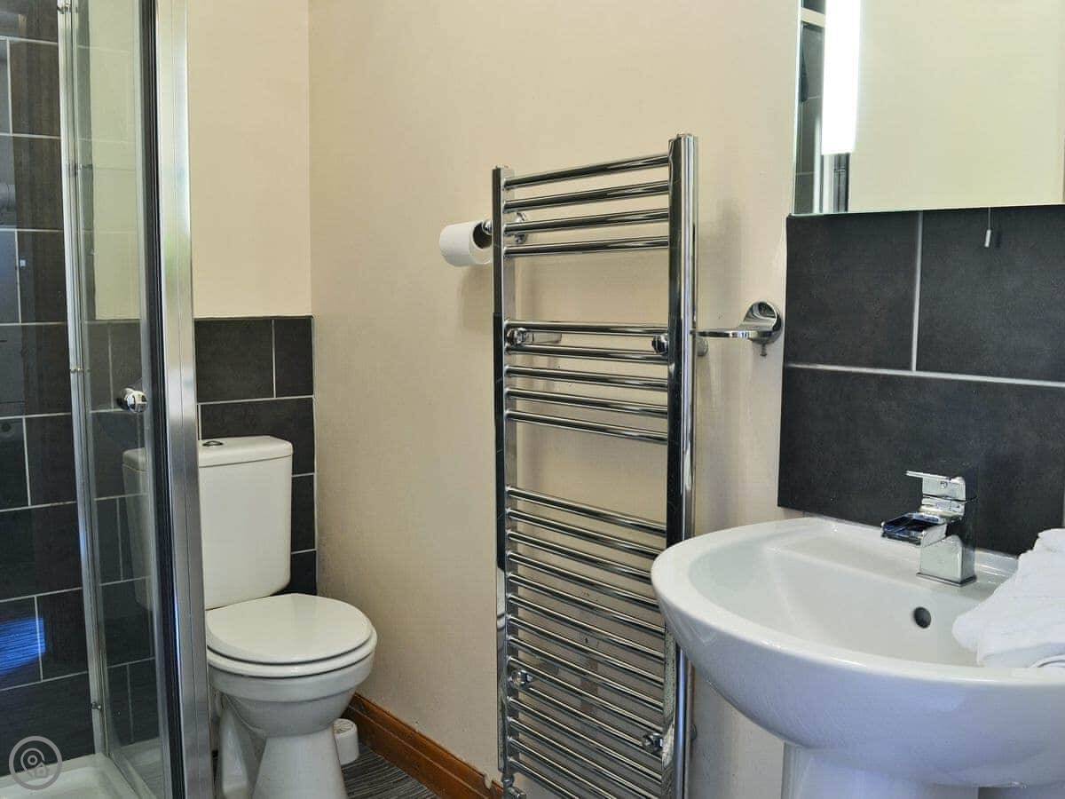 The bathroom has a shower and a bath. There's a washing machine. Bedding and towels are included. There's a cot and highchair if you need them. Parking is outside.