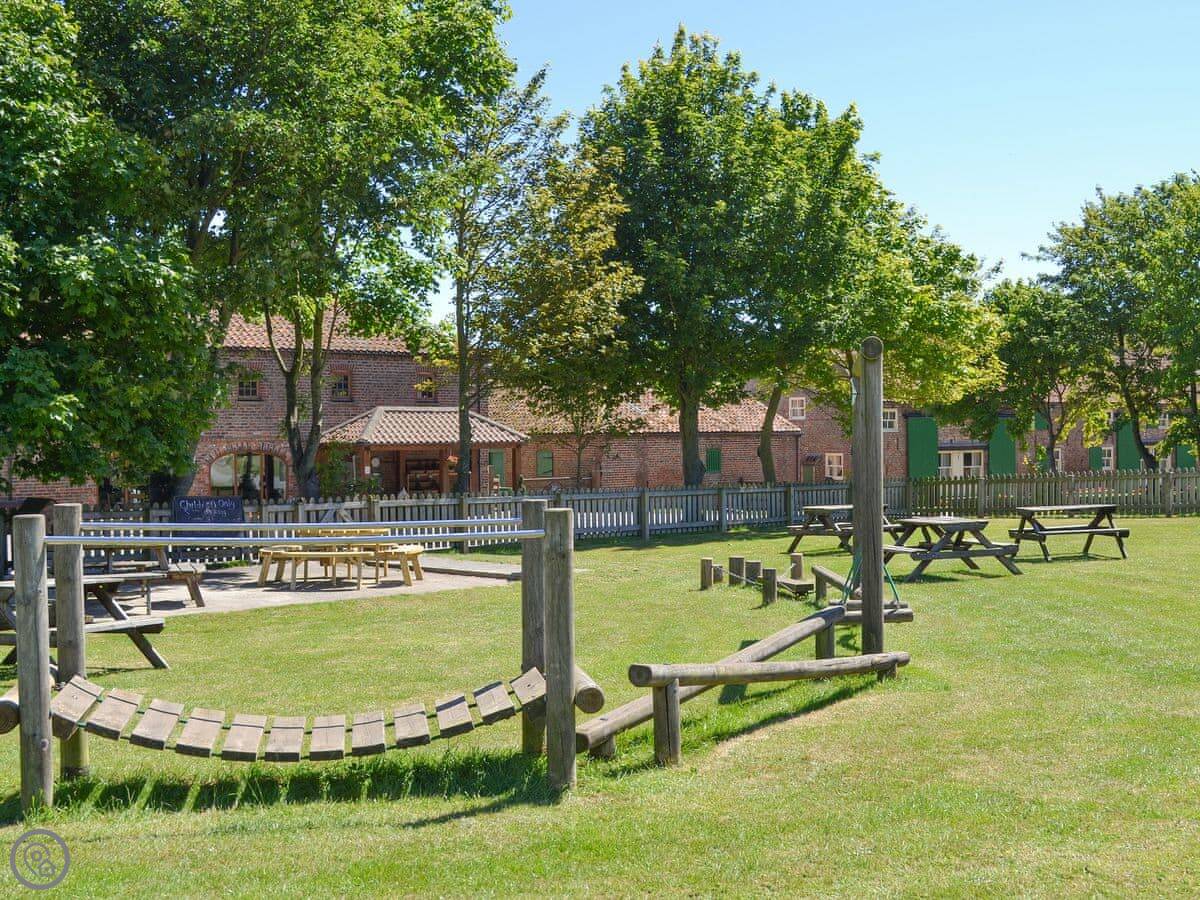 You're on a working farm. You'll hear the animals and see us going about our day. There's a big shared field out the front and a kids' play area. We've got a farm shop and cafe here too.