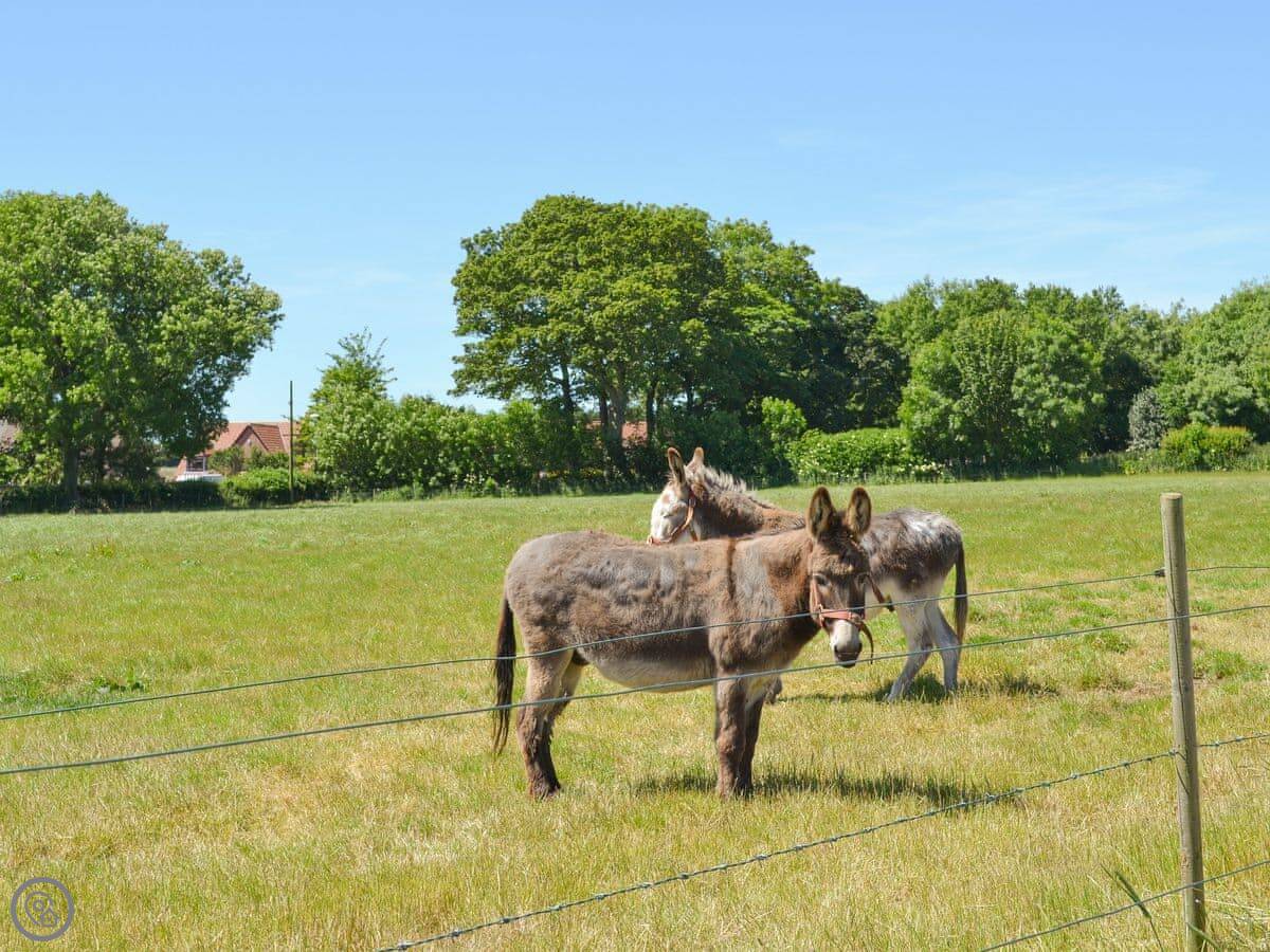 You're on a farm, so you'll see and hear the animals. There's a petting area that's popular with children from the other cottages. There's a shared field and a playground out front.