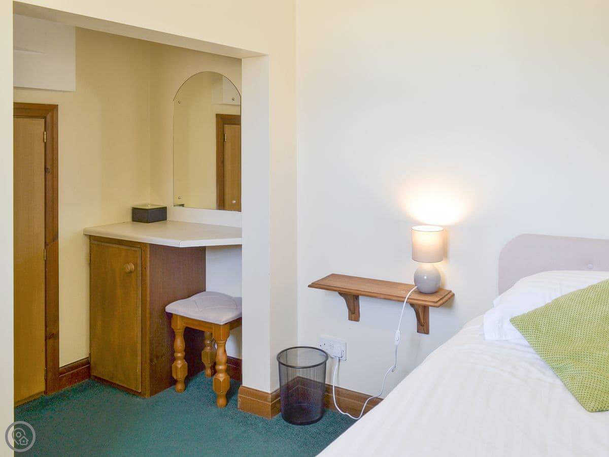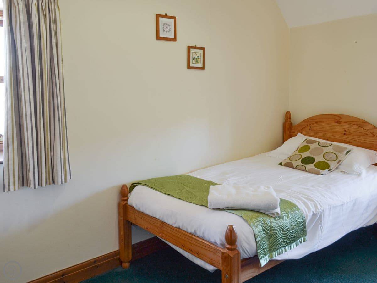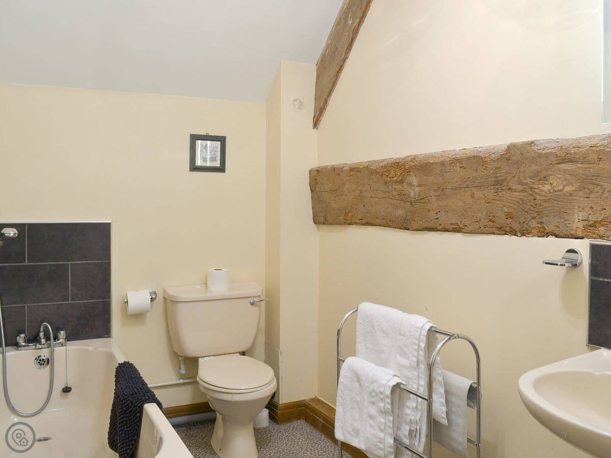 It sleeps four, in three bedrooms. There's one bathroom. It has a 3 Star rating. It's clean and comfortable, but it's not luxurious. It's a converted barn, so the ceilings are low in places and the doors are a bit lower than you might be used to. Mind your head.