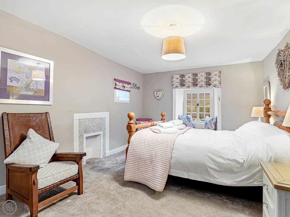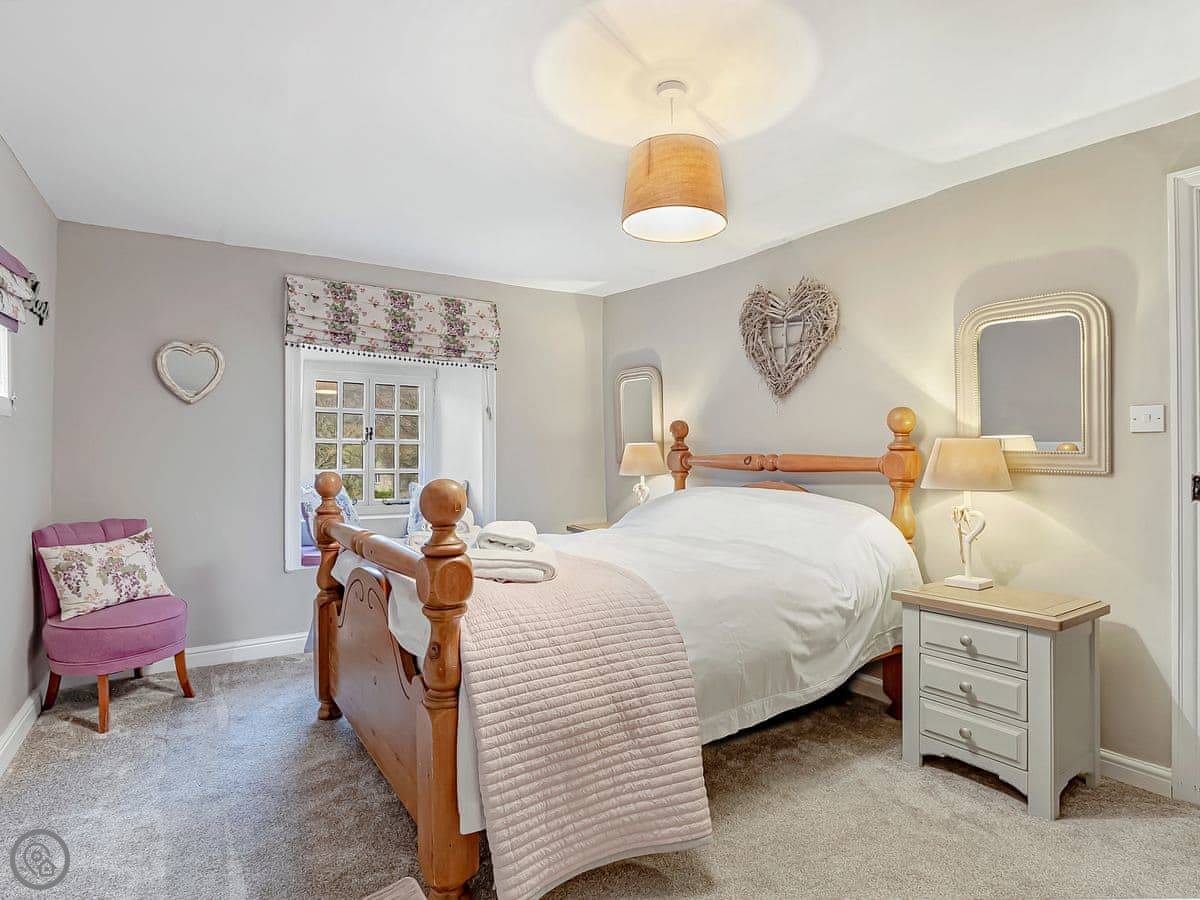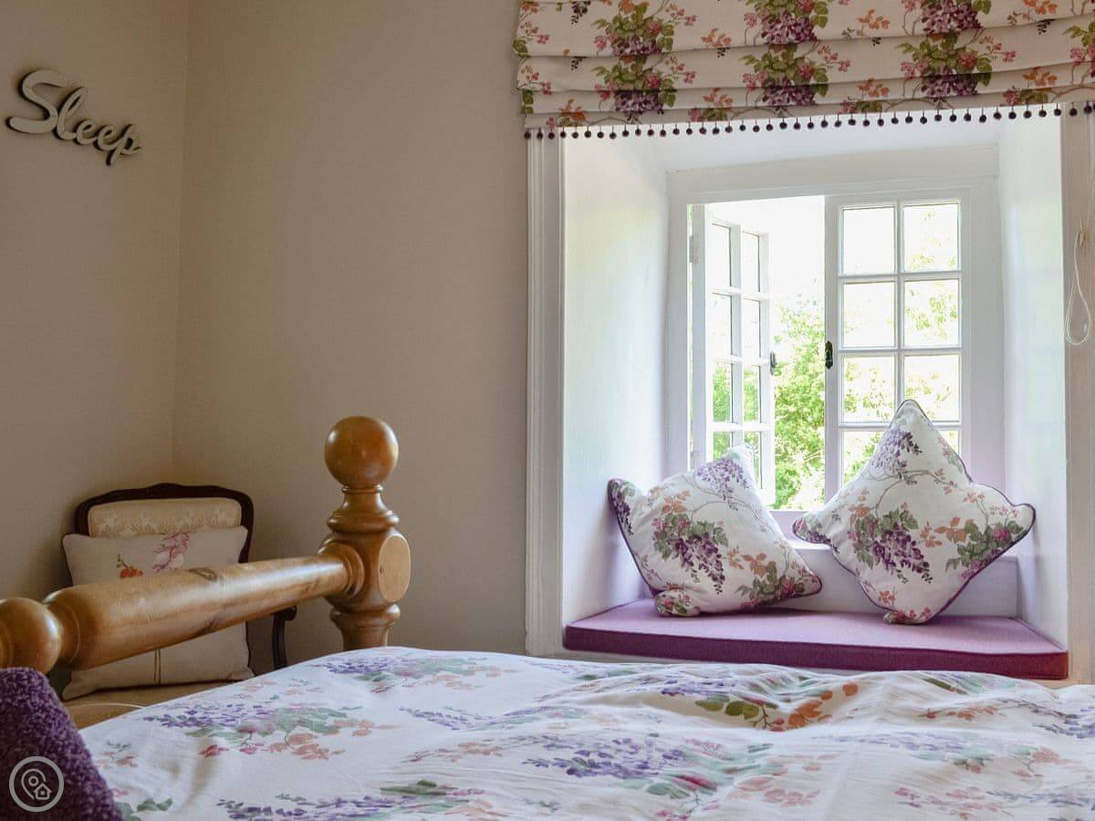 It sleeps five in three bedrooms. There's one bathroom. It's got a 4 Star rating, so it's comfortable and well-kept. It's got a woodburning stove, which is nice in the evening. The WiFi works, but it's the countryside, so it's not super fast.