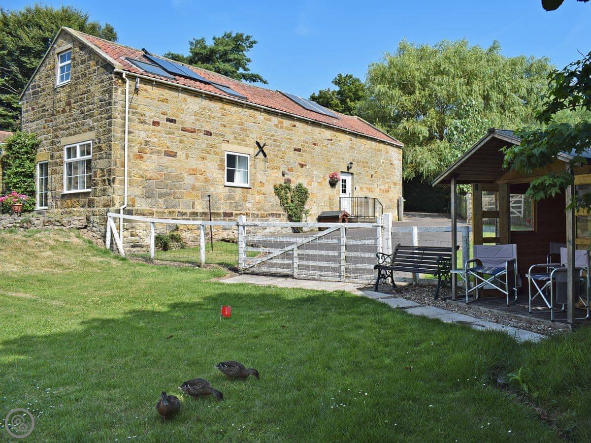 Hayes Cottages is a beautifully converted, 17th century barn overlooking a small lake in rural North Yorkshire, just 2 miles from the village of Scalby and 5 miles from the Victorian seaside town of Scarborough. There is a double and single bedroom with the main bathroom on the first floor, as well as a downstairs bedroom with a wet room and separate toilet. There is a games room, a summer house and garden furniture for relaxing and enjoying the wonderful natural surroundings. Even the dogs have been considered with a kennel in the enclosed garden and plenty of off road walks nearby.