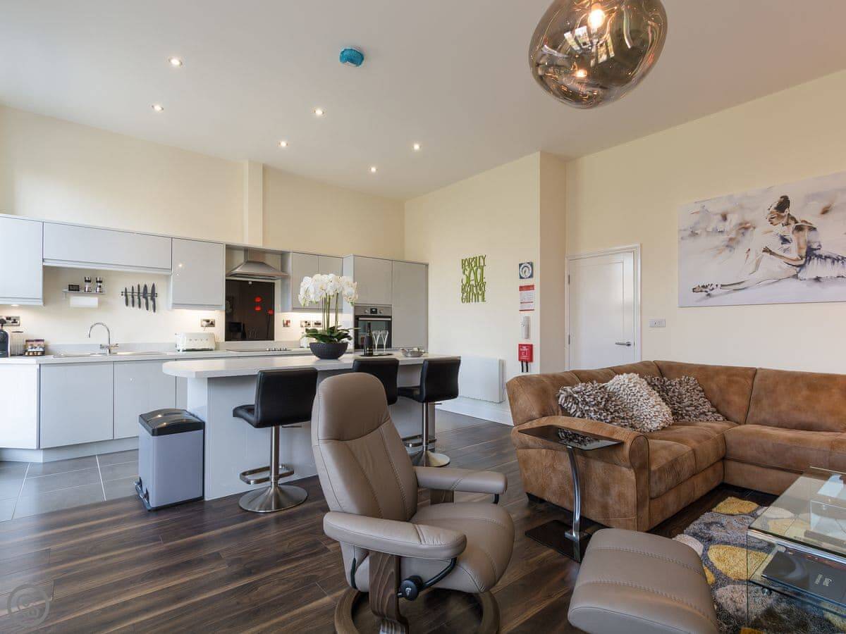 The Haven is an apartment on South Cliff in Scarborough. It's on the first floor of a Victorian house. It sleeps four, with two bedrooms and two bathrooms.