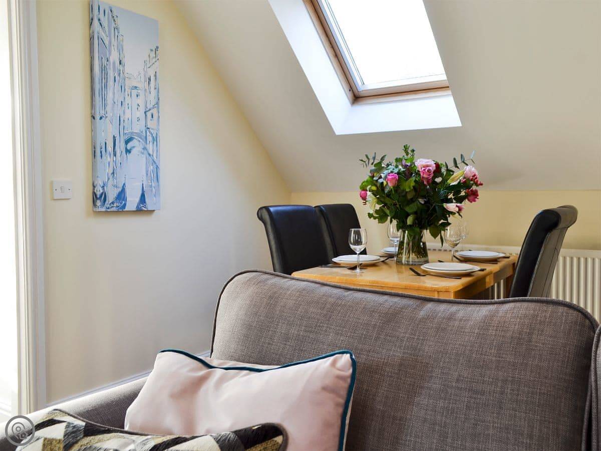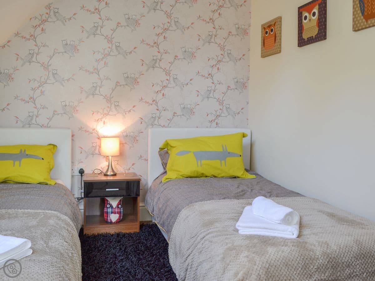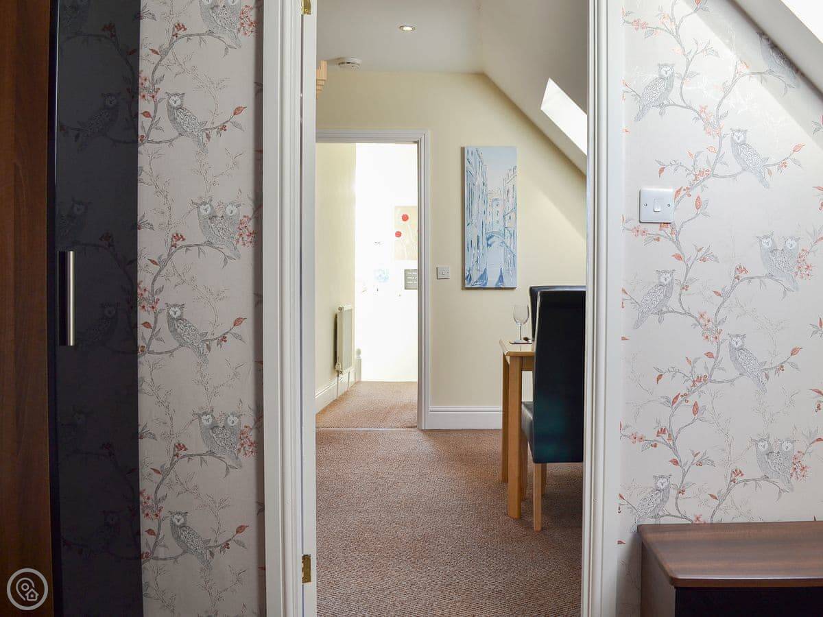 It sleeps four in two bedrooms, one double and one twin. There's one bathroom with a shower. It got a 4 Star rating after a refurbishment a few years ago. It's clean and modern. The stairs up to the front door are external and a bit steep, which is worth knowing.