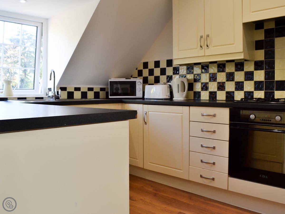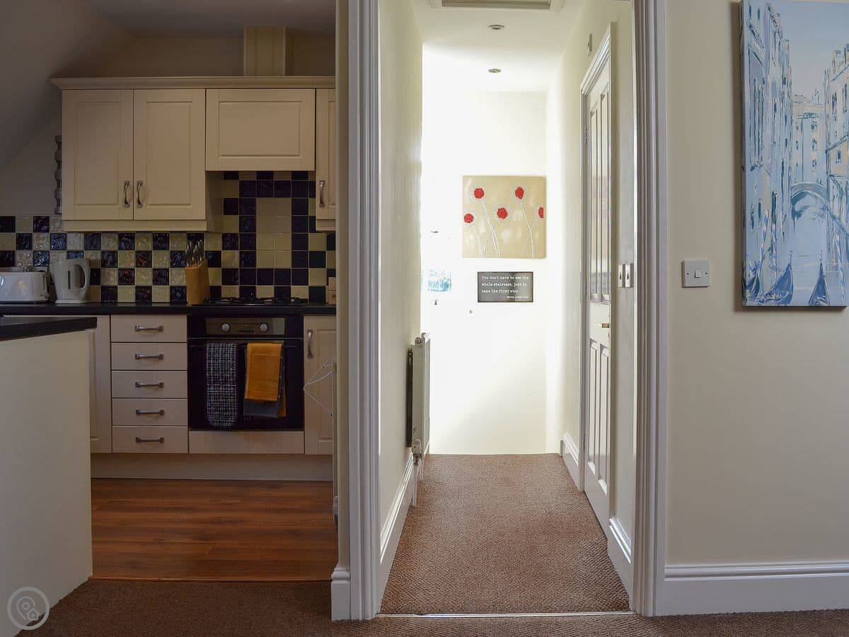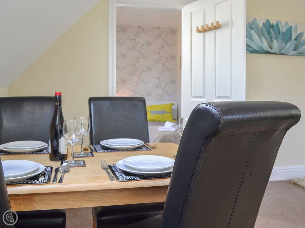 It sleeps four in two bedrooms, one double and one twin. There's one bathroom with a shower. It got a 4 Star rating after a refurbishment a few years ago. It's clean and modern. The stairs up to the front door are external and a bit steep, which is worth knowing.