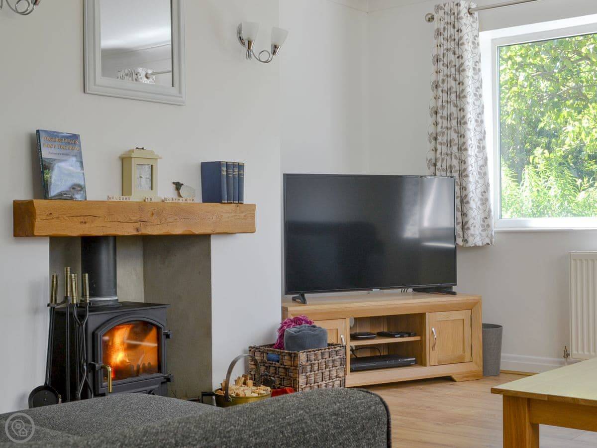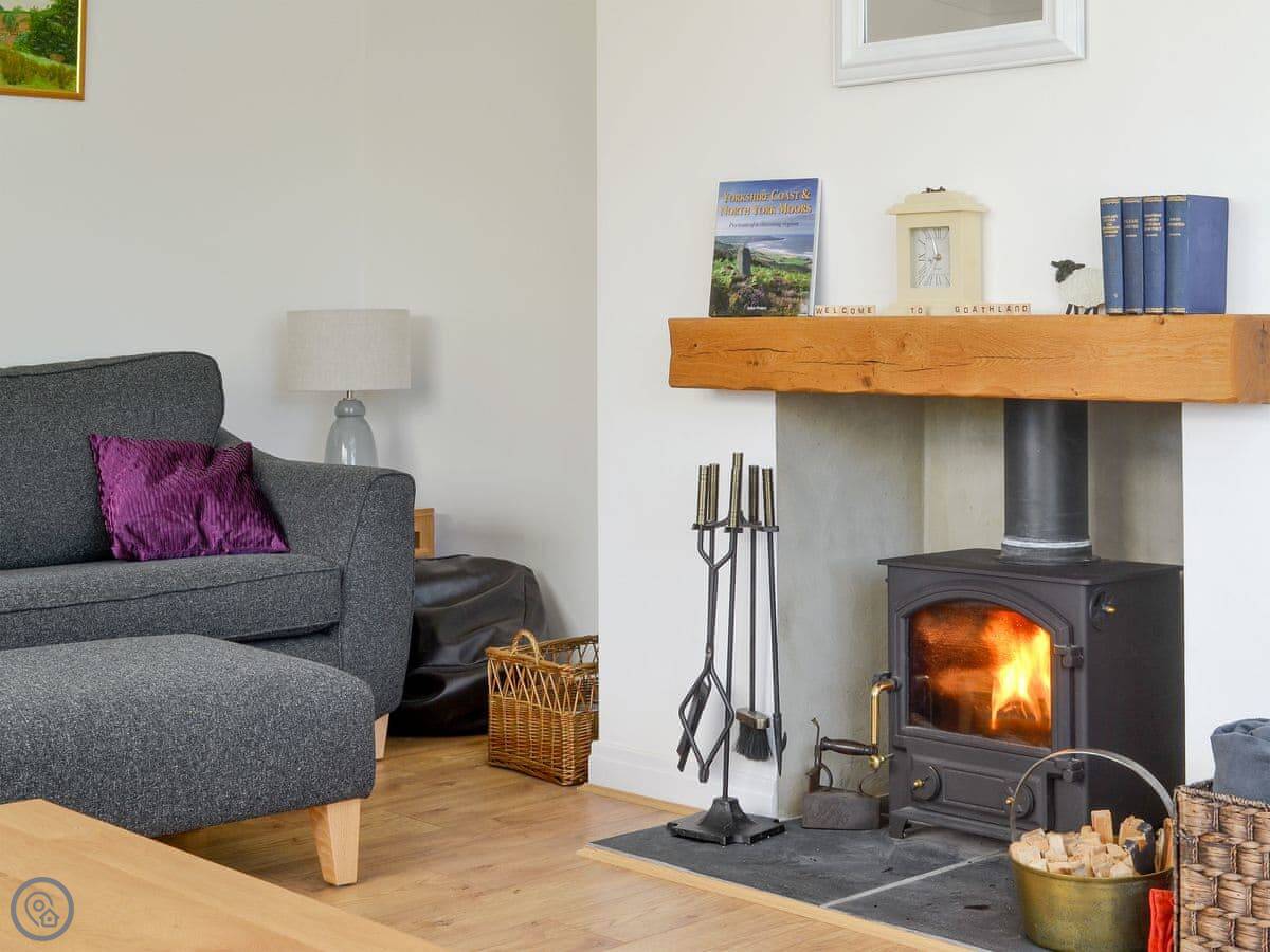 There's a wood burner in the living room. The sun room at the front gets the light. The kitchen has what you need, including a dishwasher and washing machine.