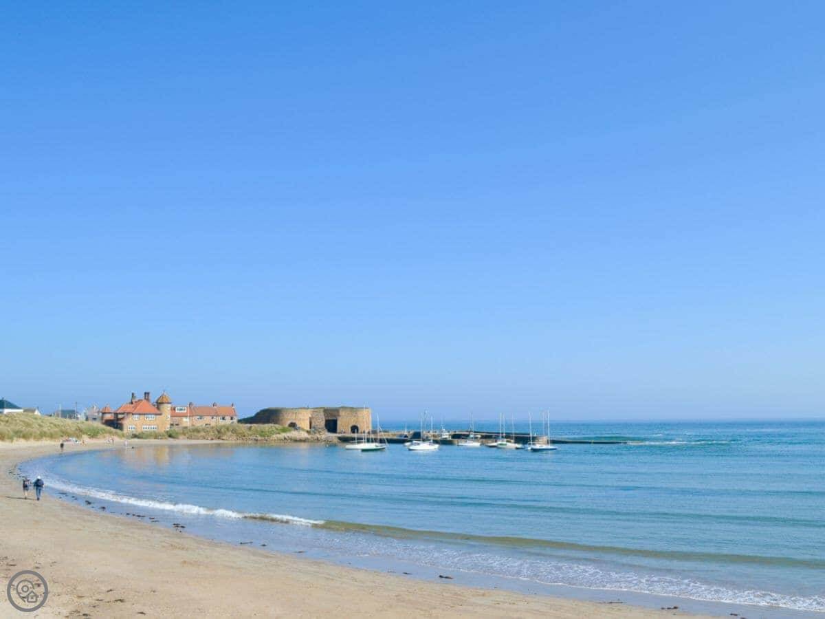 Seahouses is two miles up the coast. That's where you get the boat trips out to the Farne Islands to see the seals and puffins. Bamburgh is another three miles after that, with the castle. You can see it from the beach here.