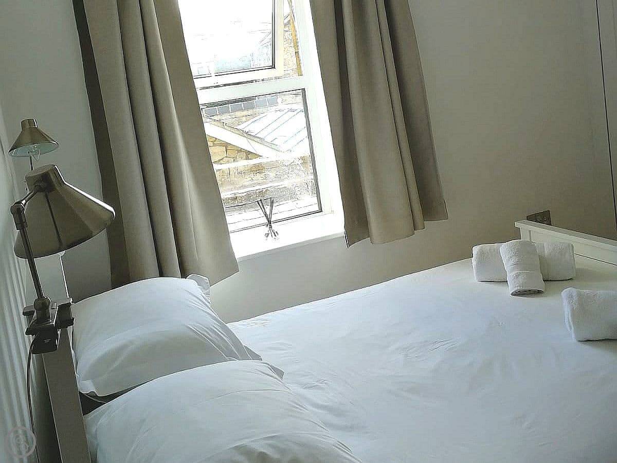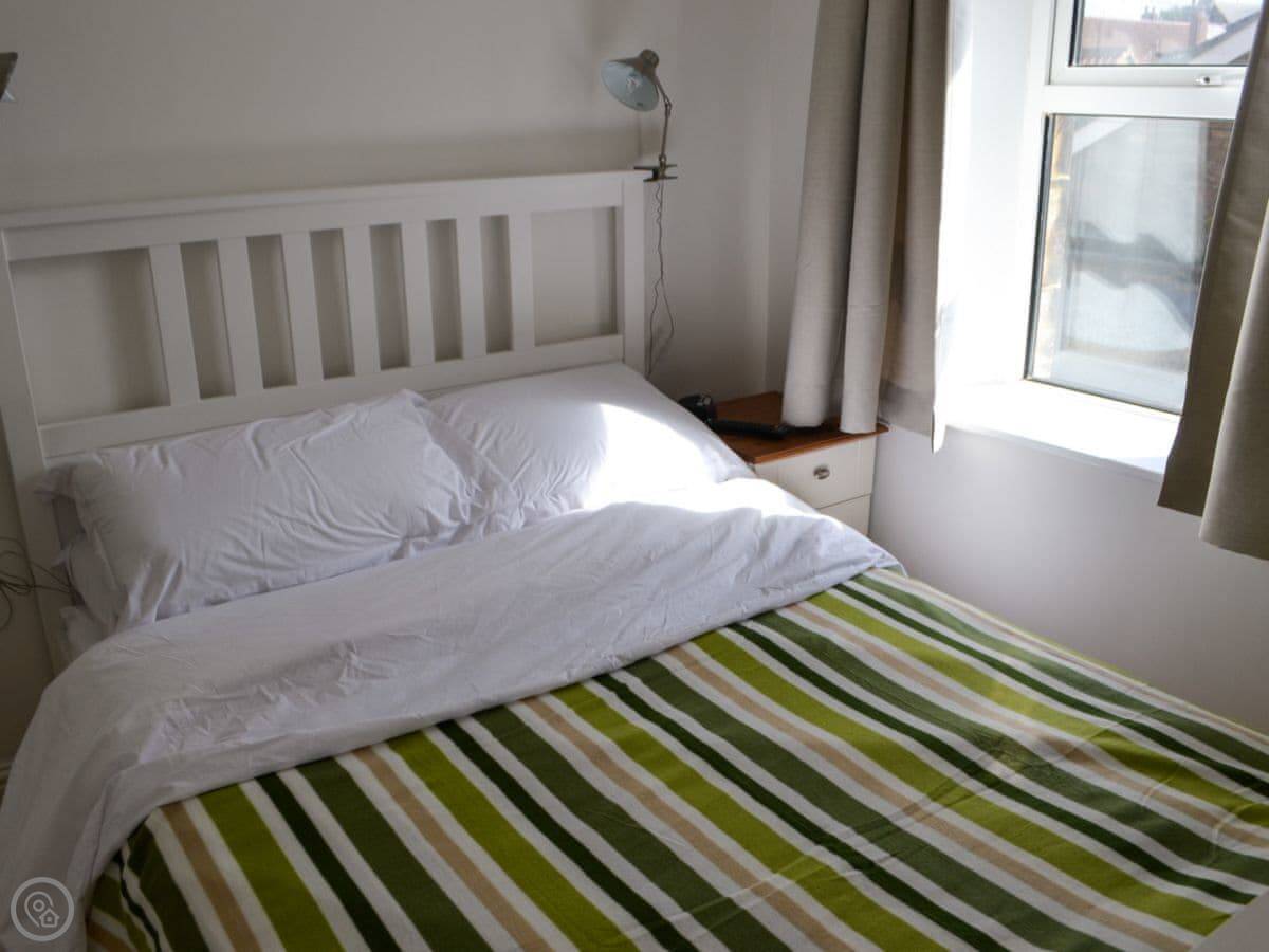 It sleeps four people in two bedrooms. There's one bathroom. It's a 3 Star place, so it's comfortable and clean. The stairs are normal but they're a typical cottage size, so watch your head.