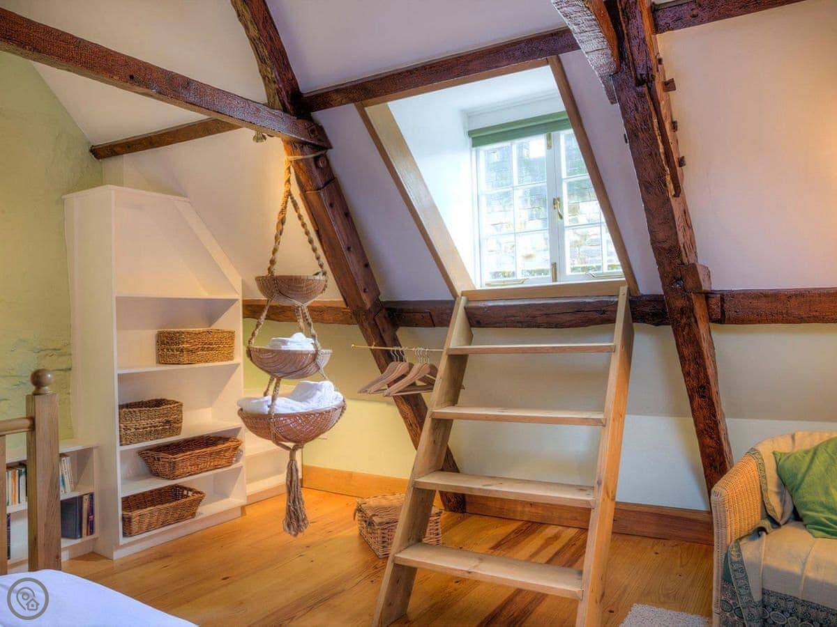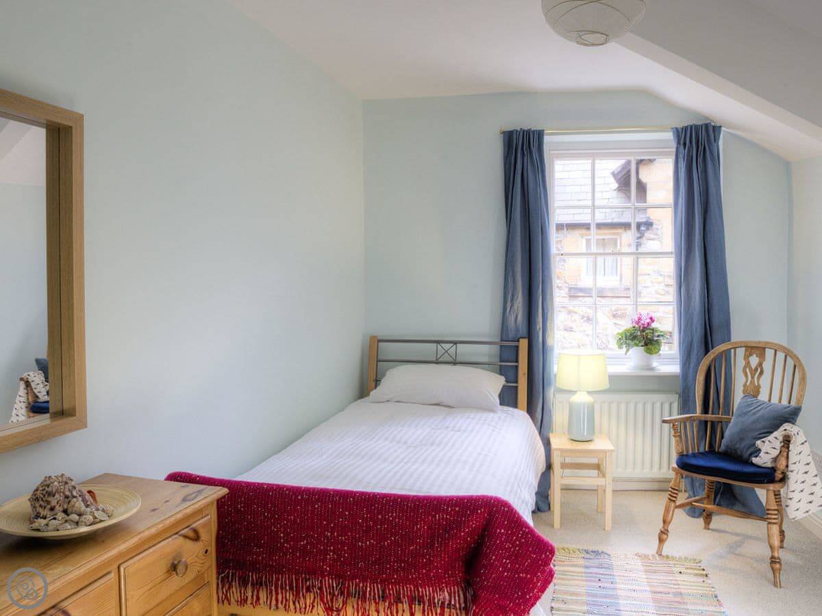 Dorothy Forster Court is thought to be one of the oldest buildings in Alnwick. This charming Grade II listed property dates back to the 17th-century and is located only a few yards from the entrance to Alnwick Castle, home to the Duke of Northumberland. The property is accessed via a private doorway on Narrowgate where a small passageway leads to its independent entrance. The accommodation is well presented over the first and second floors of the property and is stylishly furnished throughout. The adorable arched door leads to three steps then a further eight to the first floor where there is a bright and airy open plan living space, there is also a bathroom and bedroom which overlooks a delightful courtyard. Further stairs leads up to the second floor where there is a king size bed nestled within beautiful original solid beams and views to the castle. Although the owner’s do not provide a cot, guests are welcome to bring their own.