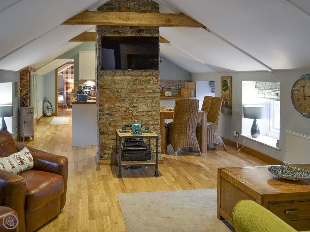 Alnwick Loft is an apartment all on ground floor level and is tastefully furnished throughout, and the open plan living space is extremely stylish and leads to two well-presented double bedrooms. A contemporary bathroom completes the picture. Alnwick is a highly sought-after holiday destination, with some facilities including a cinema/playhouse, restaurants, independent shops and variety of pubs, which are all within a gentle stroll of Alnwick Loft. Alnwick Castle, home to the Duke of Northumberland is a popular visitor attraction, or visit Alnwick Gardens, a spectacular interpretation of a formal garden, including a grand cascade waterfall and poison garden where guests can dine in the restaurant situated in the largest tree house in Europe! The picturesque coastal village of Alnmouth, where there is a variety of good restaurants, pubs, tea rooms and gift shops for the discerning visitor is only 4 miles away.