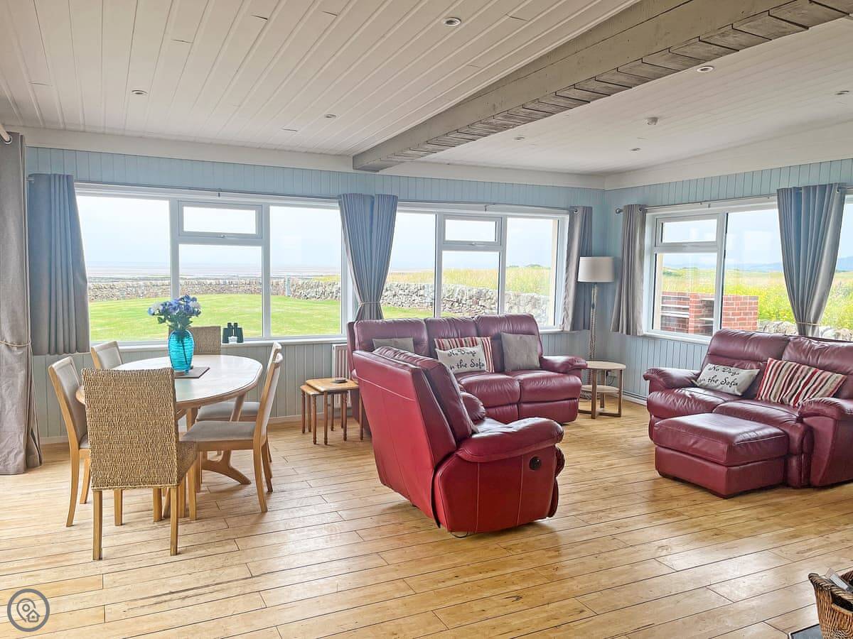 This delightful, detached, single-storey beach house stands in a magnificent position with direct access onto 2 miles of sandy beaches and rock pools, and sits right next to the 13th green of the local golf course, making it an ideal holiday location. The uninterrupted views of the sea and shore line with the Lakeland Fells to the south and Criffel and the Galloway hills to the east are breathtaking. This seaside holiday home provides comfortable and well equipped ’beach house’ style accommodation with level access to the oceanside patio from the living room, the en-suite bedroom, the adjacent bedroom and the conservatory. The light and spacious, open plan living space has three large picture windows spanning three of the walls taking advantage of the spectacular panoramic views and making this a wonderful year round retreat. The shower room is large and has a walk-in shower, and is wheelchair accessible. The small village of Southerness with its quaint lighthouse stands on the Solway Firth and is home to an outstanding championship golf course which borders the property and welcomes visitors. For bird watchers the RSPB nature reserve is just along the coast at Mersehead. Golf, cycling, walking and exploring rock pools is direct from the doorstep, so overall this is an ideal holiday location for beachcombers and outdoor enthusiasts . Other attractions nearby include, Sweetheart Abbey, Drumlanrig Castle and gardens and Mabie Farm Park and Forest, which has wonderful cycle routes. This area of Dumfries and Galloway is steeped in Border history and is rich in historical attractions including many castles, Robbie Burns connections and interesting towns and villages which host a lively calendar of festivals and events. Shop 500 yards, pub 400 yards.