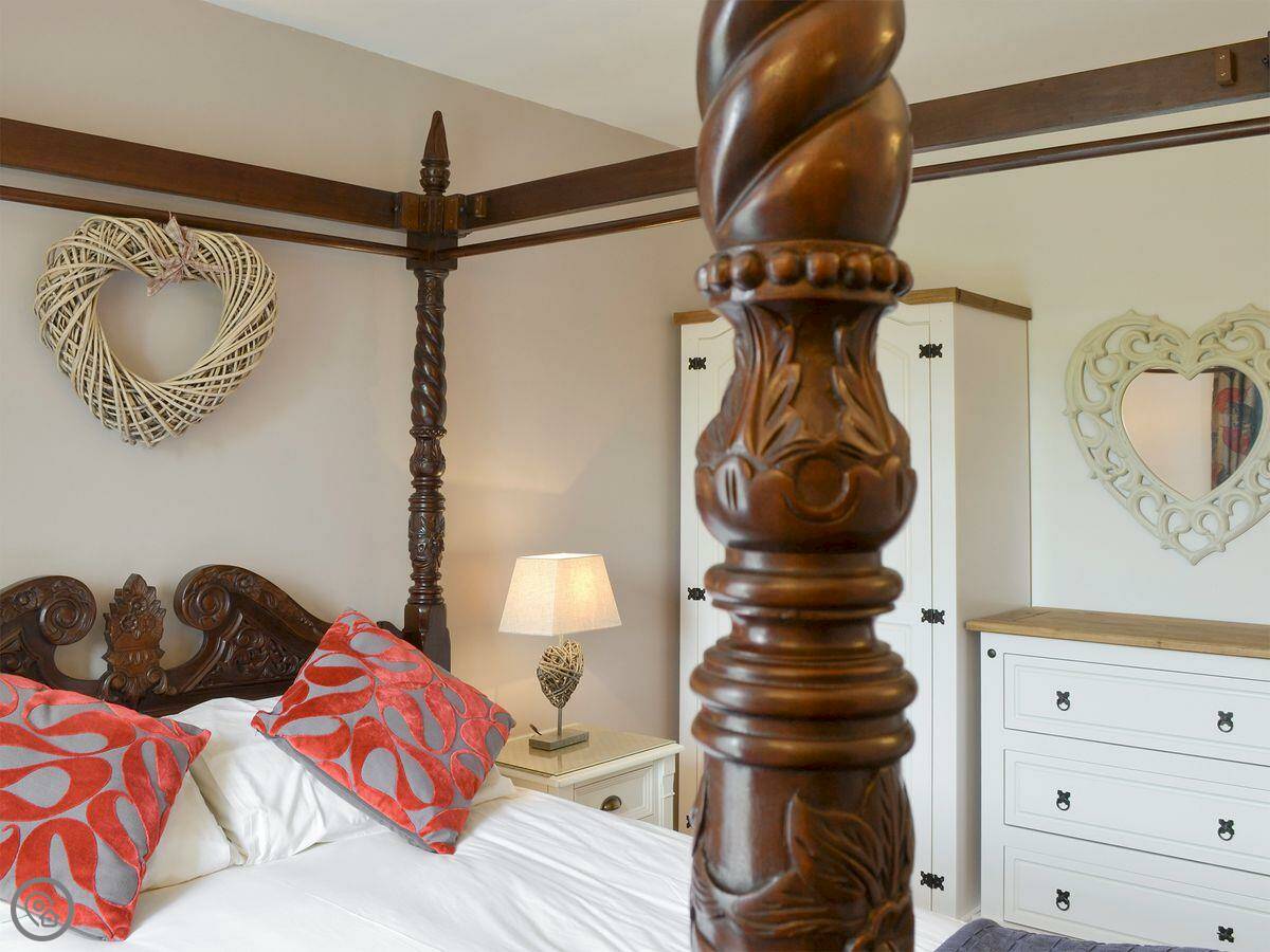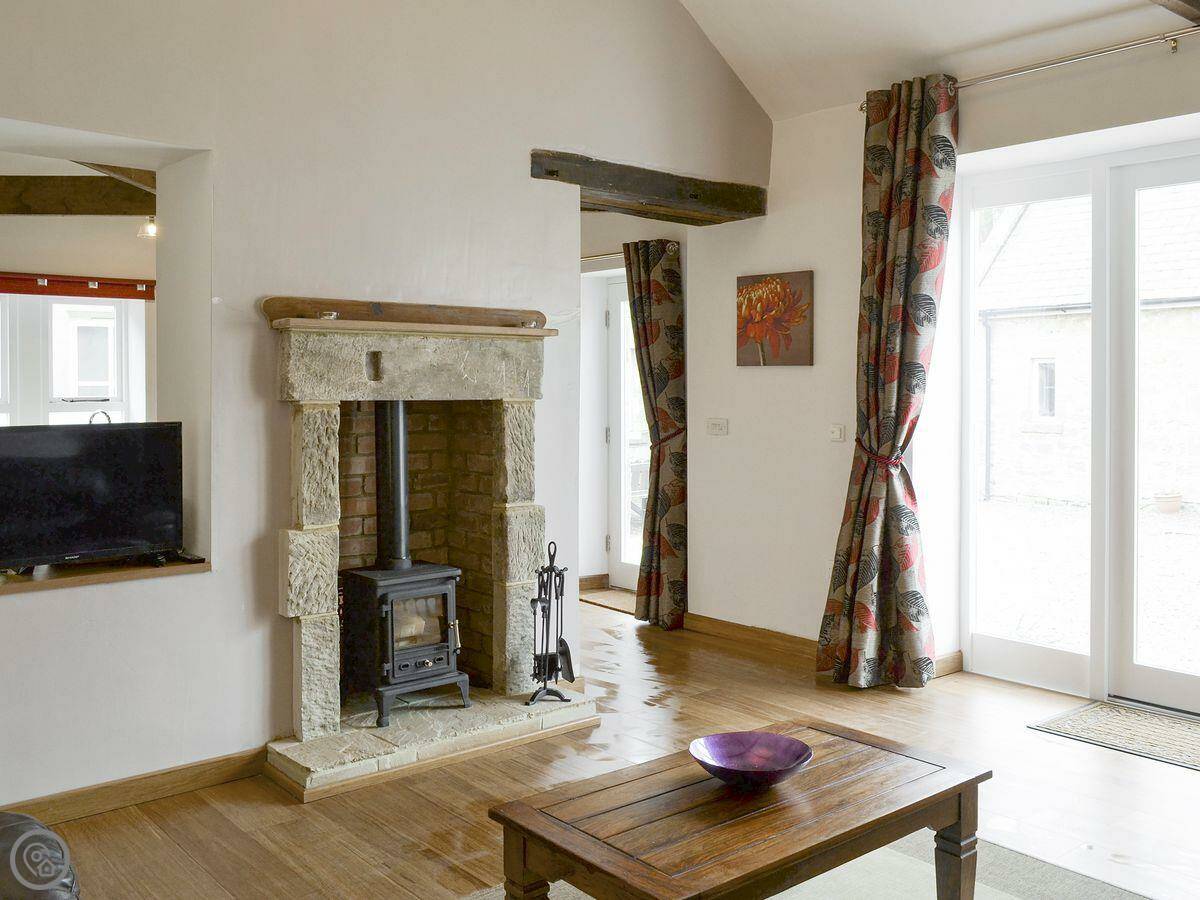 It's all on ground level, so no stairs. It sleeps two, one bedroom with a double bed and one bathroom with a shower. It's got a 4 Star rating. It's clean, comfortable and well looked after, with some old beams and an arched door. There's a wood burner in the living room. We leave you some logs to get started.