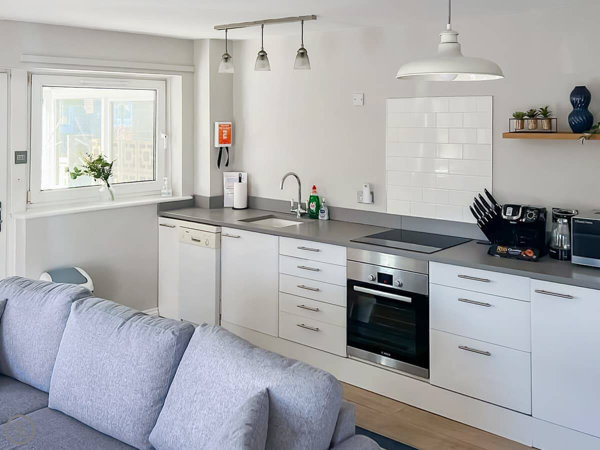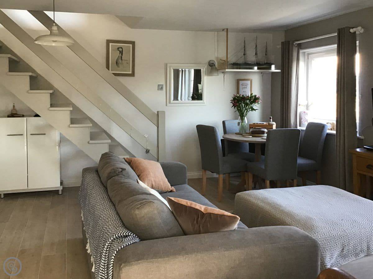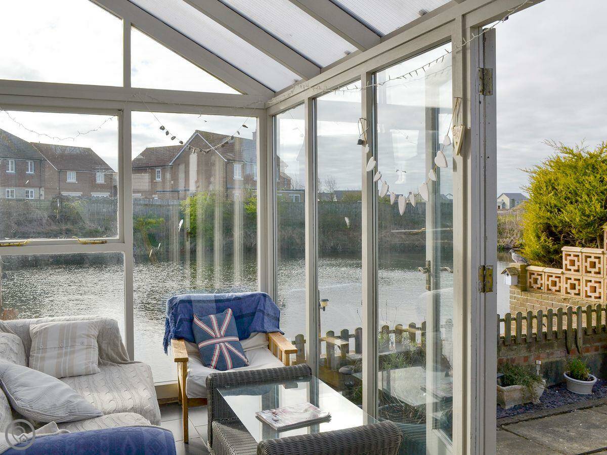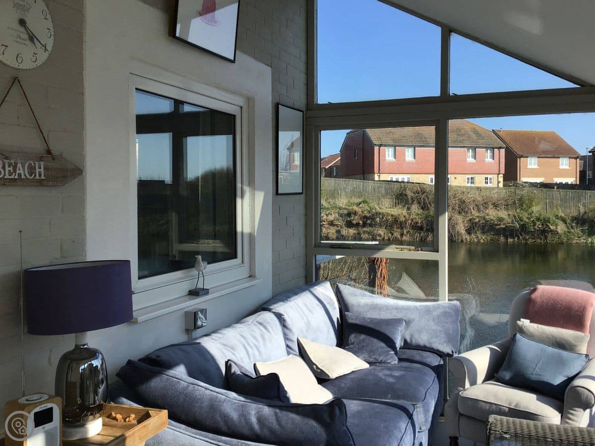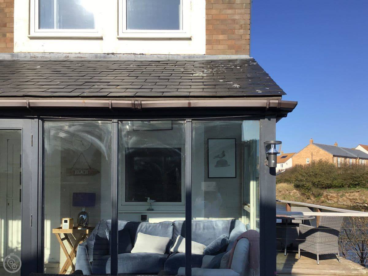 Water’s Edge Holiday Home sits adjacent to an inlet of water in the heart of the seaside village of Beadnell. This semi-detached holiday home enjoys an enviable position adjacent to the water where swans and seabirds meander by. The entrance to the property is by the lovely sun room, which has underfloor heating and travertine floor tiles. It also has a comfortable sofa to enjoy the peace and quiet, and the view of the lake. A washer dryer and outdoor seating cushions are also located in here.