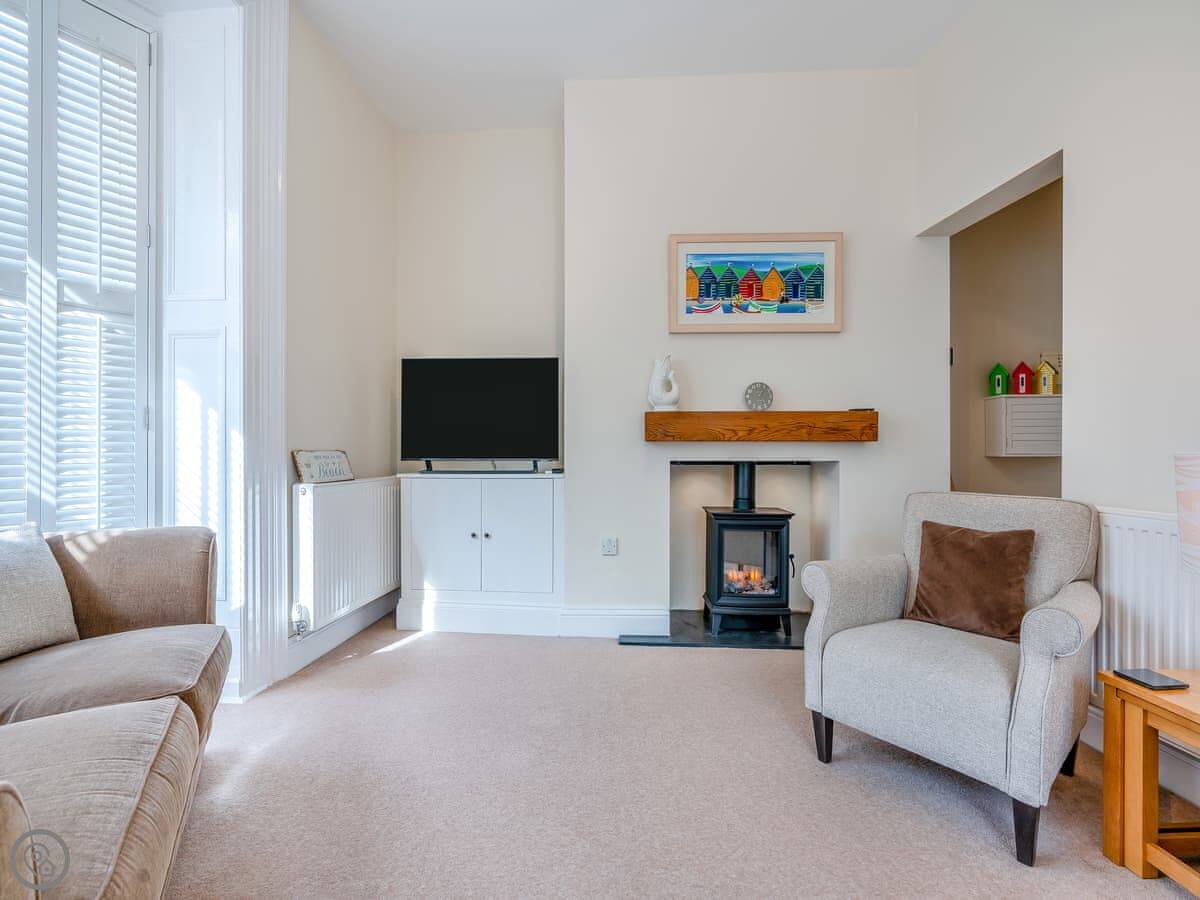 You're very close to Whitby Pavillion. The beach is about three miles long, it's sandy and goes all the way to Sandsend. It's a proper walk. Into Whitby town centre is about five minutes on foot. That's where all the pubs, shops, and the harbour are. You can get boat trips from there.