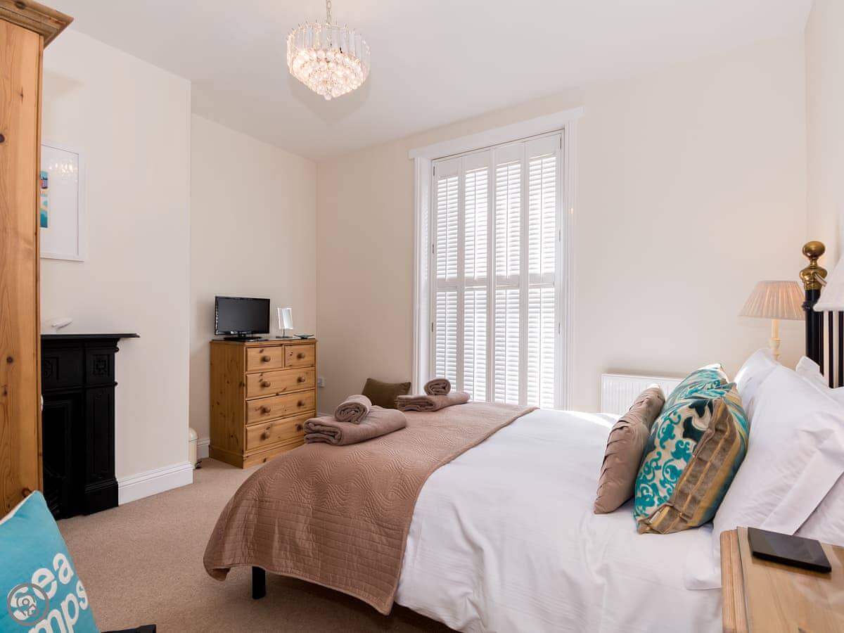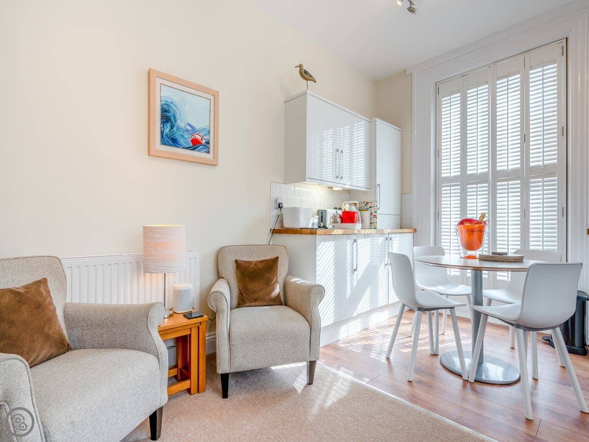 Sea Glimpse is a first-floor flat in Whitby, on West Cliff. It's in a Georgian house that's been done up. You can see a bit of the sea from the windows.