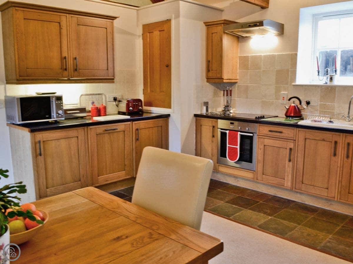Inside, it’s all on the ground floor. Open plan living area with a wood-burning stove. It’s got a kitchen with a dishwasher and washing machine. There's a shower room. Bedding and towels are included.