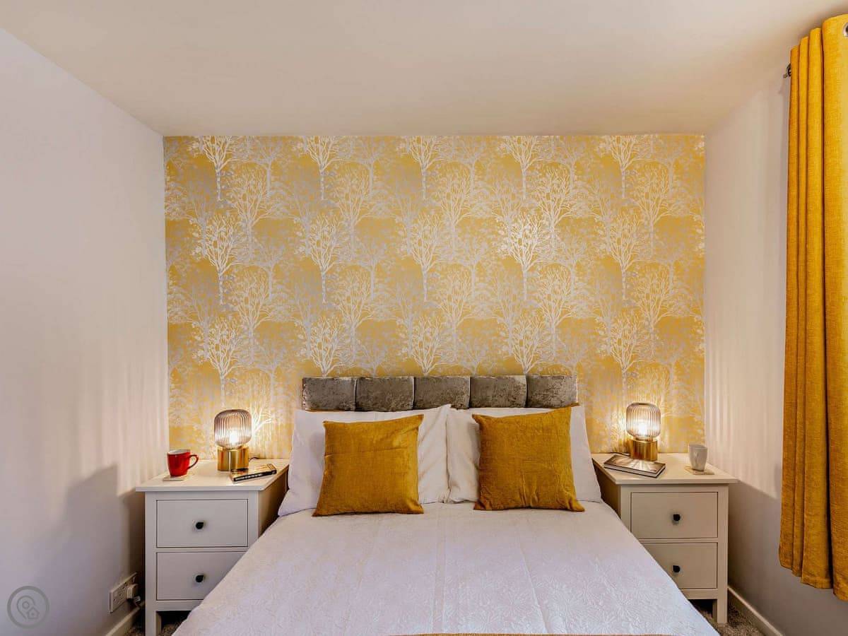 It sleeps four. Two bedrooms, one bathroom. It's got a 4 Star rating. It's been renovated fairly recently, so it feels clean and modern. The living room window has a view of part of the lake and the hills.