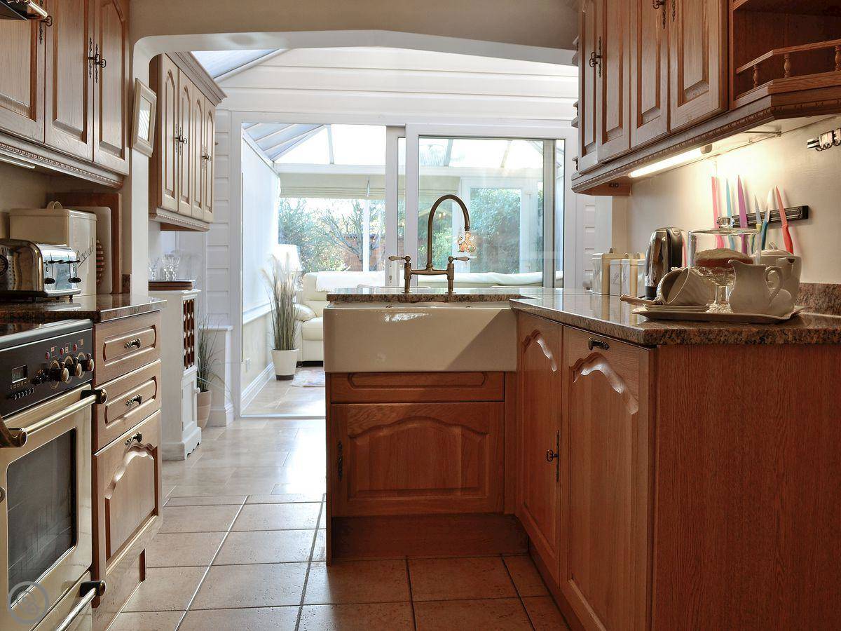 Inside, it's quite spacious. There's a conservatory on the back that looks over the garden. It's a nice spot to sit. Facilities are all there: WiFi, a TV, a washing machine, dishwasher. Bedding and towels are included. You can park on site, and there's extra parking round the back if you have more than one car.