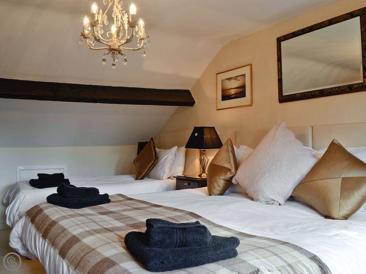 It sleeps five. Two bedrooms and one bathroom, all upstairs. I should say the stairs to the top floor are narrow and fairly steep. Cottage stairs, you know. It's got a 5 Star rating.